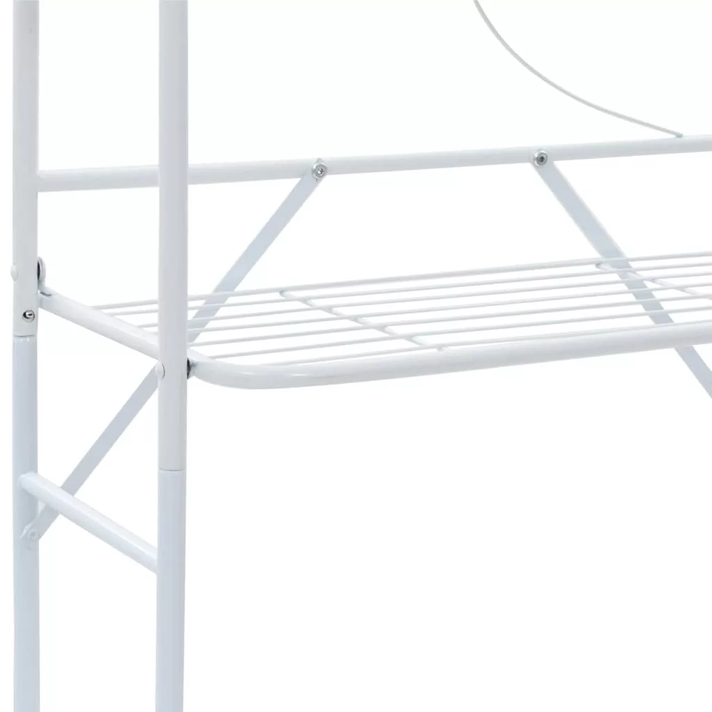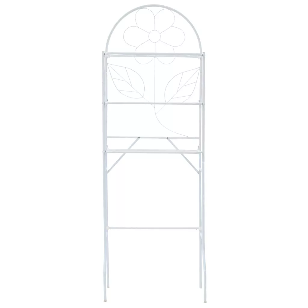 Ez a WC feletti tárolóállvány praktikus és dekoratív kiegészítője lesz fürdőszobájának. Extra tárhelyet biztosít, hogy a fürdőszobában ne legyen rendetlenség. A WC feletti tárolóállvány erős acélvázból készült, amely stabillá és tartóssá teszi. Az állvány bőséges helyet biztosít különféle fürdőszobai kellékek elhelyezésére. A gyönyörű virágmintás dizájn elegáns bájt kölcsönöz fürdőszobájának. Ez az állvány mosógéppel is használható. A WC tárolóállvány összeszerelése egyszerű. Figyelem! A felborulás elkerülése érdekében ezt a terméket a mellékelt fali rögzítőeszközzel kell használni.