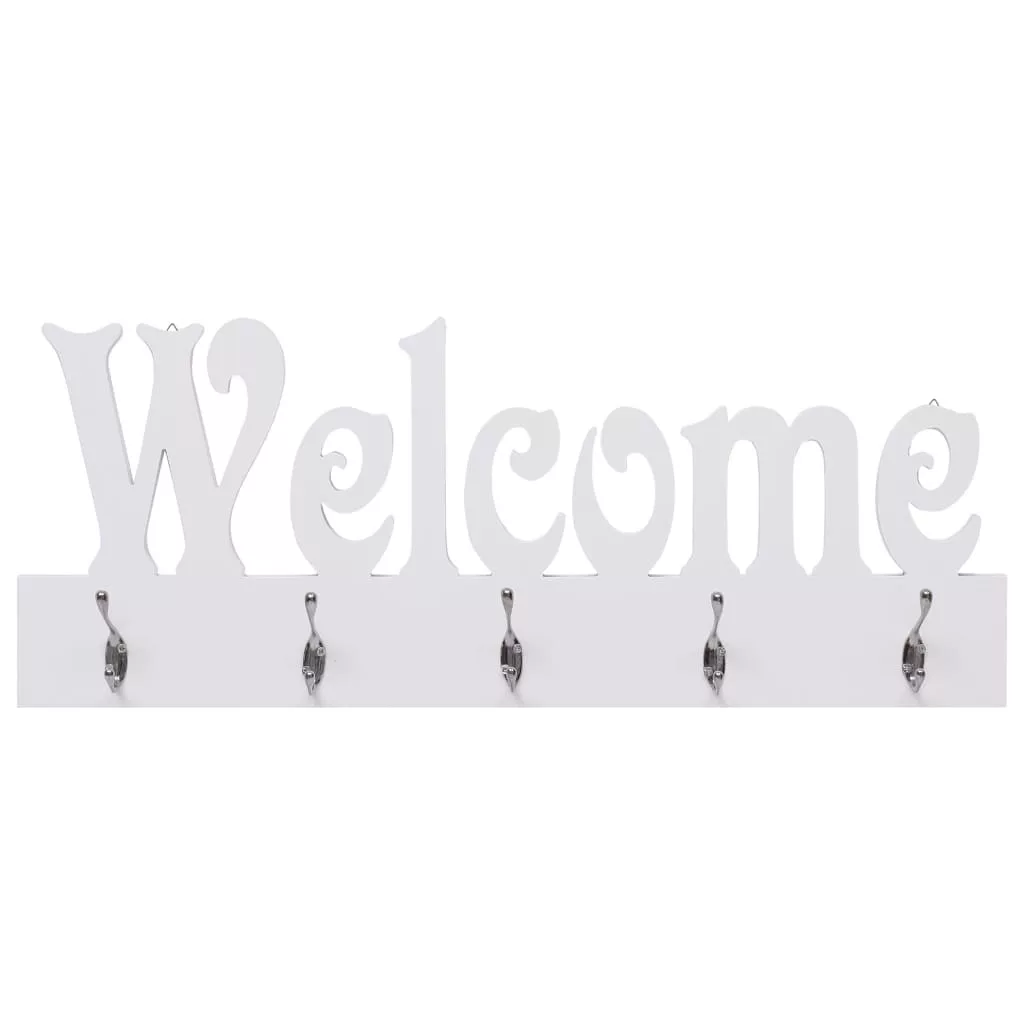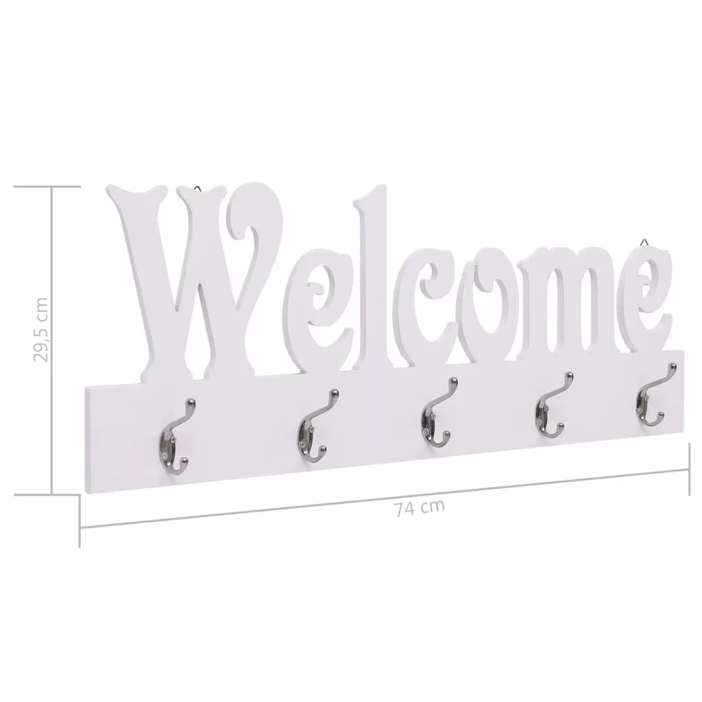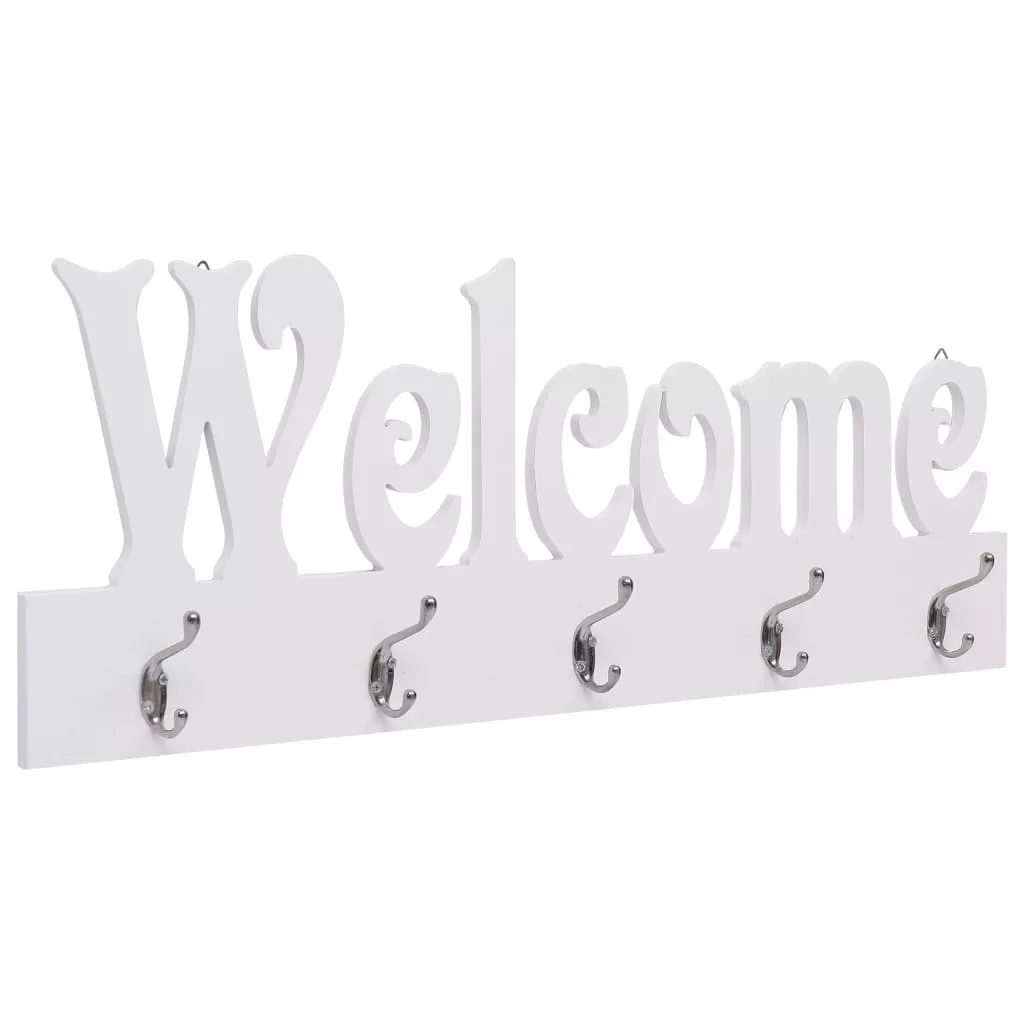 fehér WELCOME" feliratú fali fogas 74 x 29,5 cm"