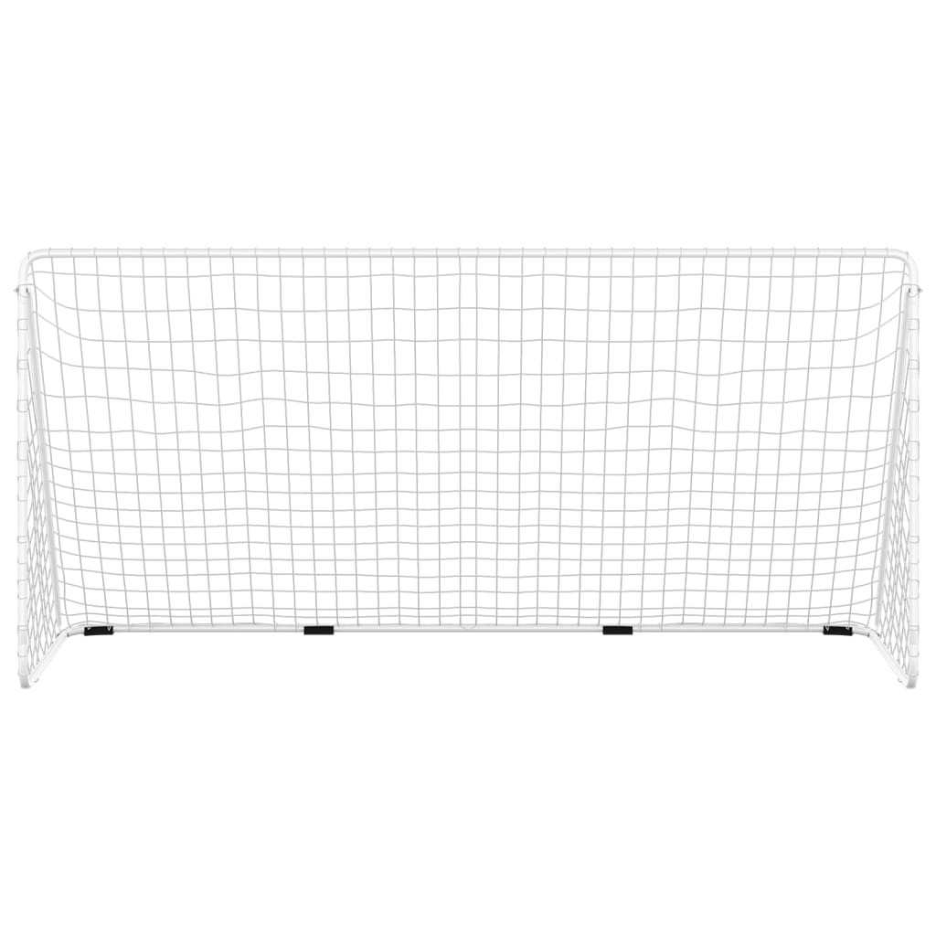 fehér acél focikapu hálóval 366 x 122 x 182 cm