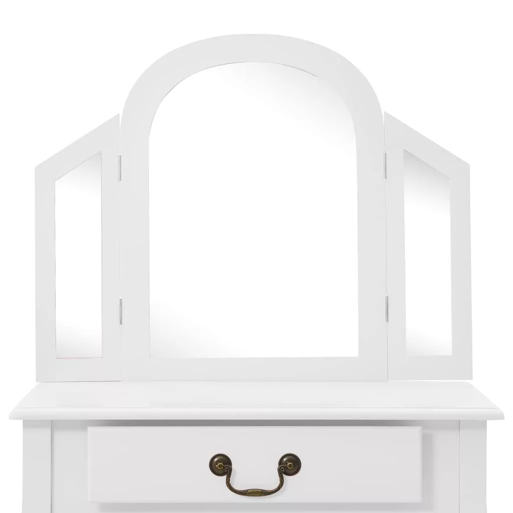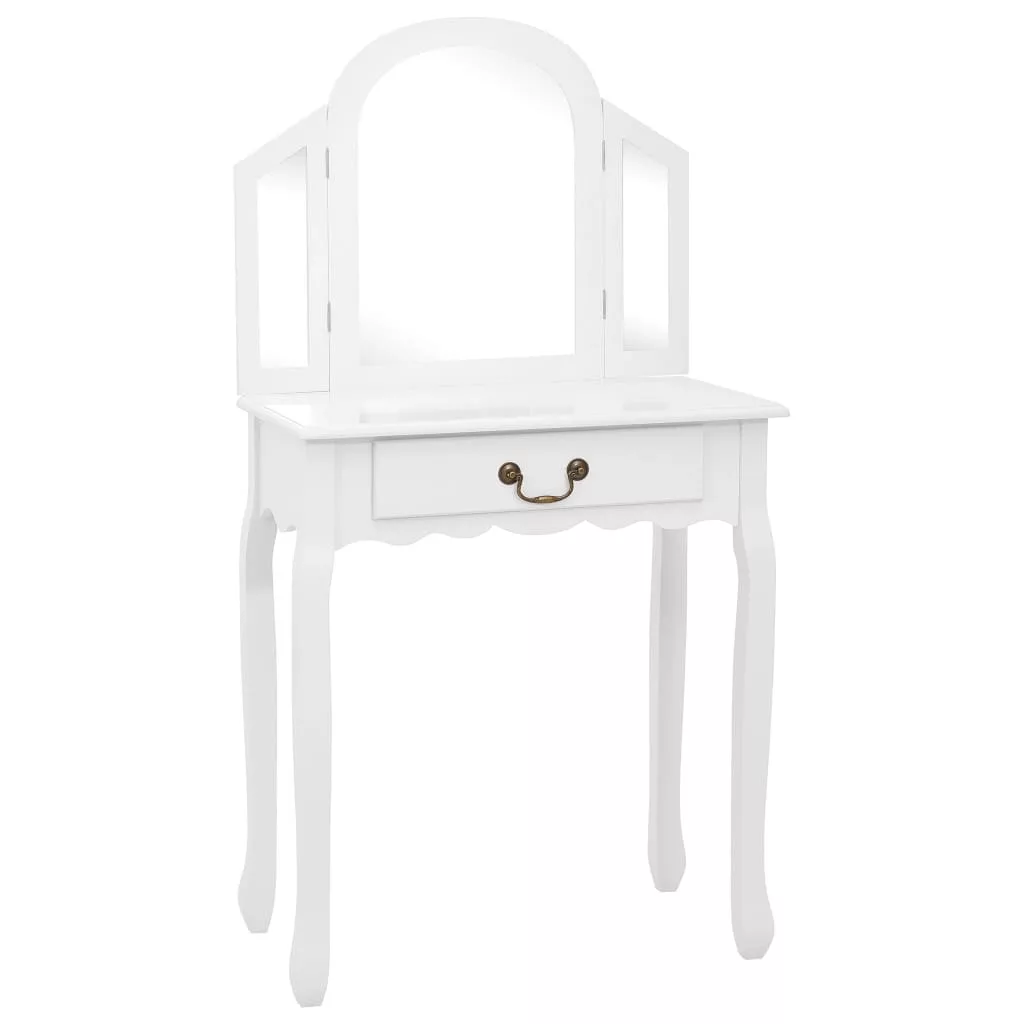 fehér császárfa MDF fésülködőasztal ülőkével 65x36x128 cm