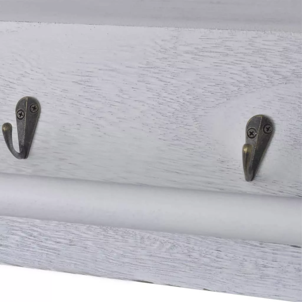 Ez az egyedülálló polc kiváló minőségű fából készült, kialakítása letisztult, de elegáns. Nem csupán tárolóhely a holmijának, de otthonának is szemrevaló része lesz. Ez a fantasztikus fali polc tárolóhelyet és ruhaakasztót is kínál. A polc két rendkívül strapabíró fonott kosárral érkezhet otthonába. Négy fém kampója extra helyet kínál, ráakaszthatja kulcsait, kalapjait vagy kesztyűit, a keresztrúdra pedig törölközőket vagy mosdókesztyűket. Kérjük, győződjön meg arról, hogy a polcot a megfelelő magasságba szerelte fel.