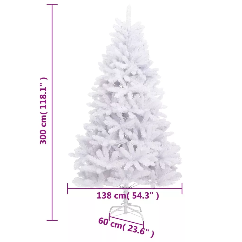fehér csuklópántos műkarácsonyfa állvánnyal 300 cm