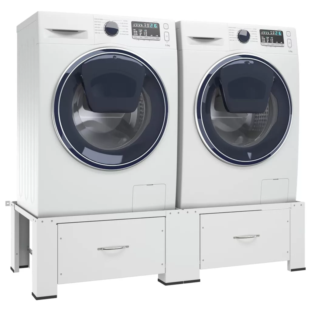 A dupla állvány kényelmes munkamagasságra emeli a padlótól az olyan eszközöket, mint a mosógép és a szárítógép, így nem kell lehajolni, amikor be- vagy kipakolja a ruhákat. Az állvány erős acélból készült, így nagyon masszív és mindkét része 100 kg-ig képes megtartani a mosógép vagy a szárítógép súlyát. A csúszásmentes párnáknak köszönhetően a mosó- és szárítógépek stabilan állnak. A lábak is gumírozottak, ami csúszásmentessé teszi őket, és megóvja a padlót a karcolódástól. Az állvány két fiókkal is rendelkezik, amelyek extra tárolóhelyet biztosítanak.