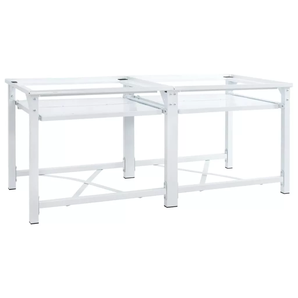 fehér dupla mosógéptartó állvány kihúzható polcokkal