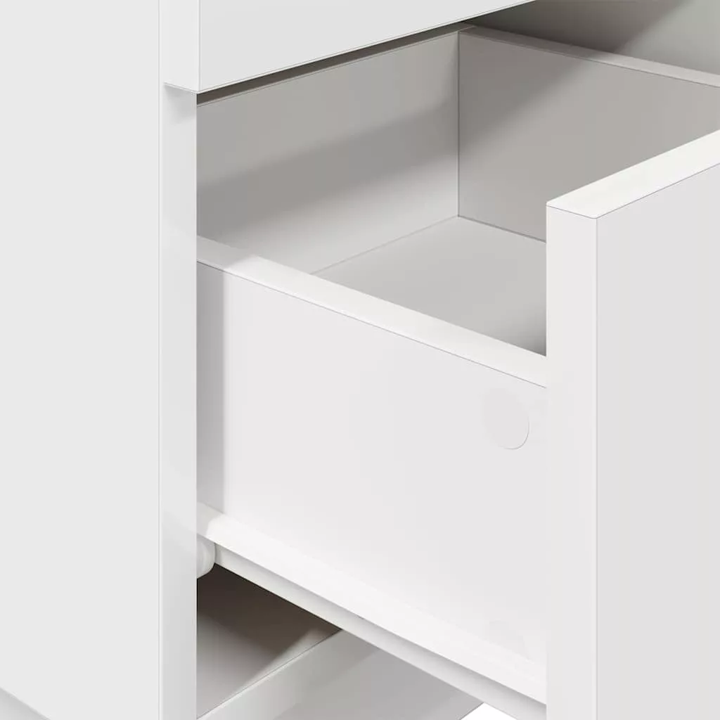 Akár a kedvenc könyve után nyúl, akár az éjszakai szükségleteit tárolja, ez az éjjeliszekrény ötvözi a stílust és a praktikumot, így remek választás az ágya mellé. Stabil és tartós anyag: A szerelt fa tartós és stabil anyag sima felülettel, amely ellenáll a nedvességnek, a vetemedésnek és a hasadásnak, így megbízható választás különféle célokhoz.Bőséges tárolóhely: A szekrény két fiókkal és egy nyitott tárolórekesszel bőséges tárolóhelyet biztosít, így rendszerezheti és tárolhatja az olyan tárgyakat, mint a könyvek, magazinok vagy személyes tárgyak, így hálószobája rendezetlen marad.Gyakorlati felhasználás: Az ágyból való könnyű hozzáférés érdekében ideális magasságú asztal a funkcionalitás és a kényelem jegyében készült. A fiókok praktikus gombbal vannak ellátva, így biztosítva, hogy simán és könnyedén nyíljanak.Könnyen karbantartható: Sima felületének köszönhetően a szekrény nedves ruhával könnyen tisztítható, és kevesebb gondozást igényel. Figyelem:A felborulás elkerülése érdekében ezt a terméket a mellékelt fali rögzítőeszközzel kell használni.