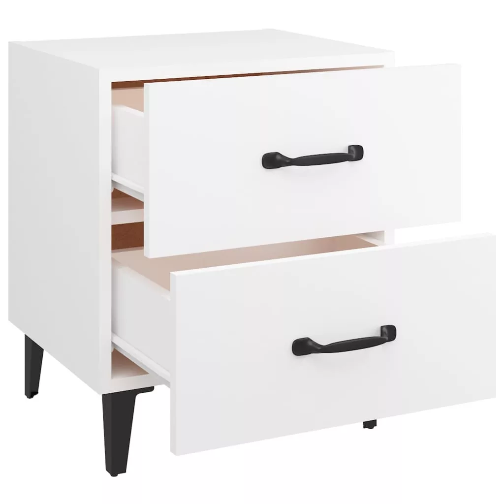 Csempésszen egy csipetnyi ipari bájt otthonába ezzel az éjjeliszekrénnyel. Prémium minőségű anyag: A szerelt fa kivételes minőségű, sima felületű, szilárd, stabil és ellenáll a nedvességnek.Masszív lábak: A fém lábak elbűvölő ipari stílust csempésznek otthonába, és a stabilitásról is gondoskodnak. Bőséges tárolóhely: Az éjjeliszekrény két, fém fogantyúval ellátott fiókkal rendelkezik. A tágas fiókokban rendezetten tarthatja holmiját. Masszív felső lap: Az ágy melletti éjjeliszekrény masszív lapja ideális dísztárgyak, képkeretek vagy cserepes növények elhelyezésére.
