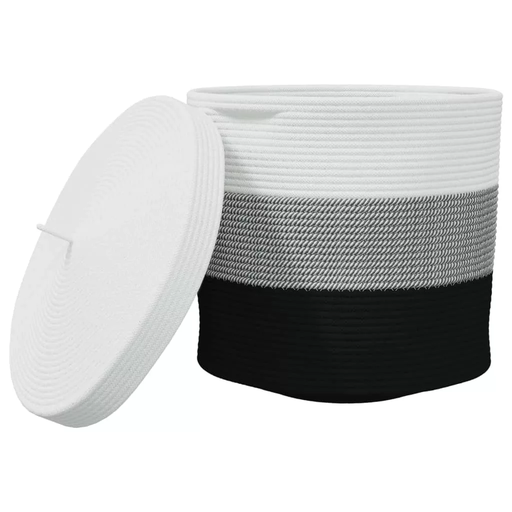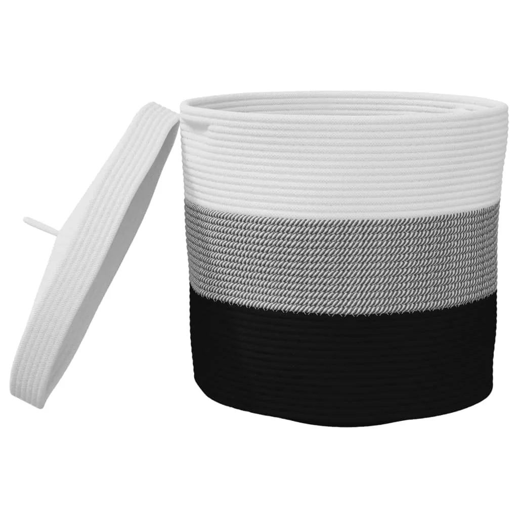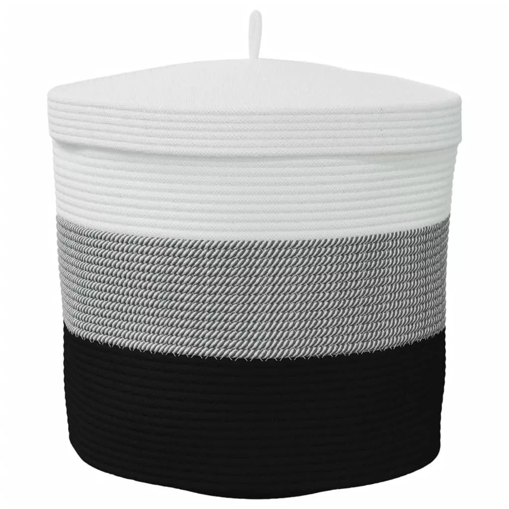 fehér-fekete pamut tárolókosár fedéllel Ø40 x 35 cm