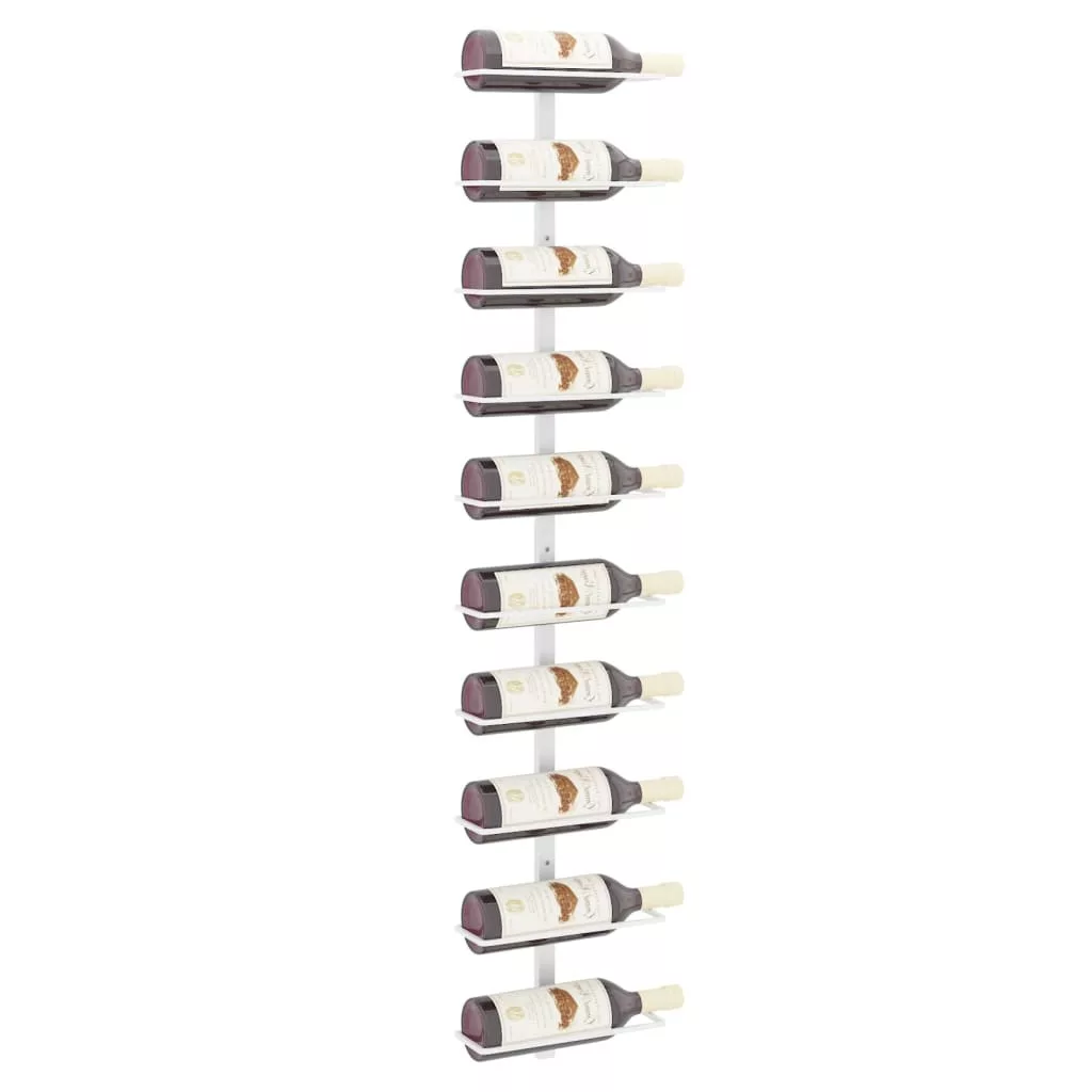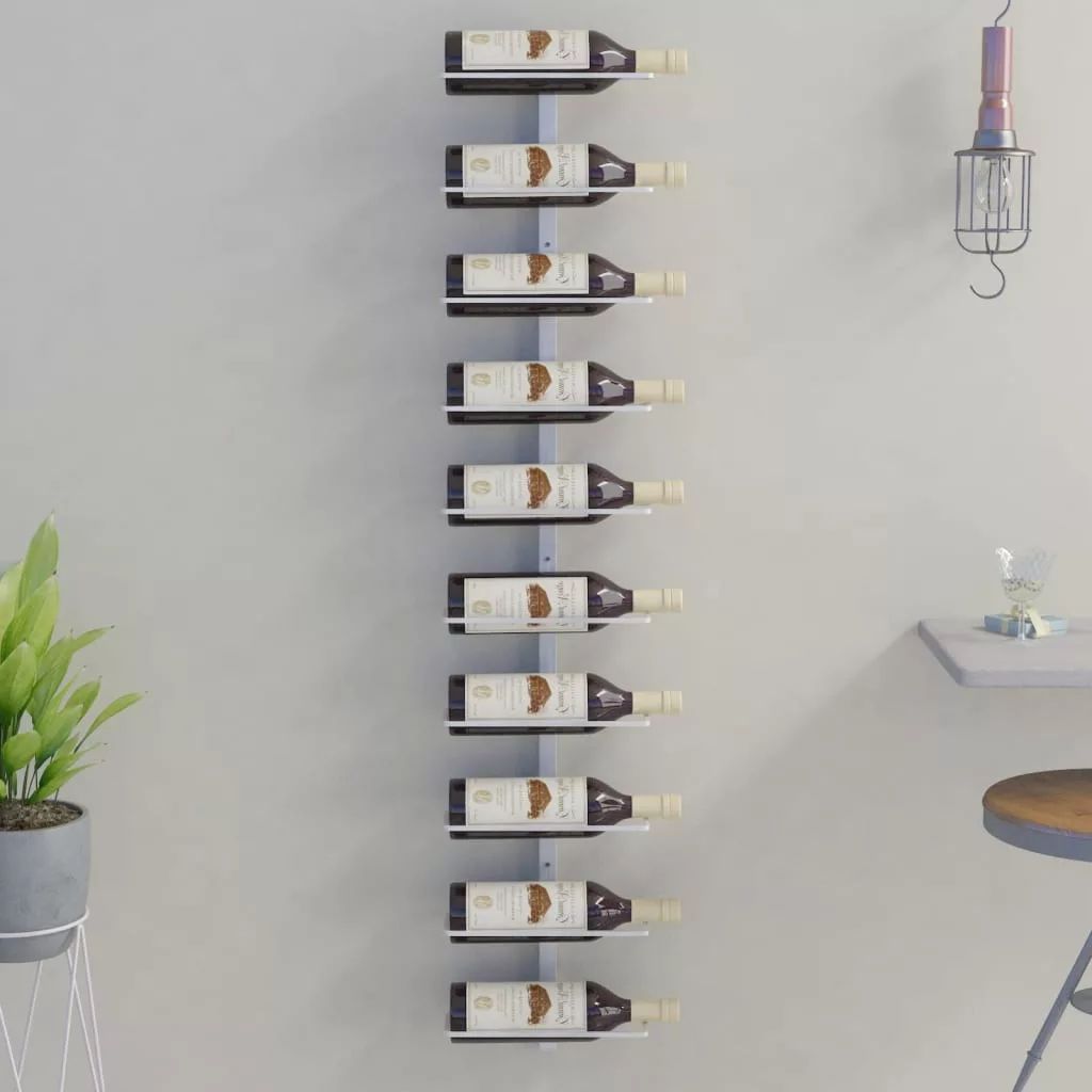 fehér fém falra szerelhető bortartó állvány 10 palacknak