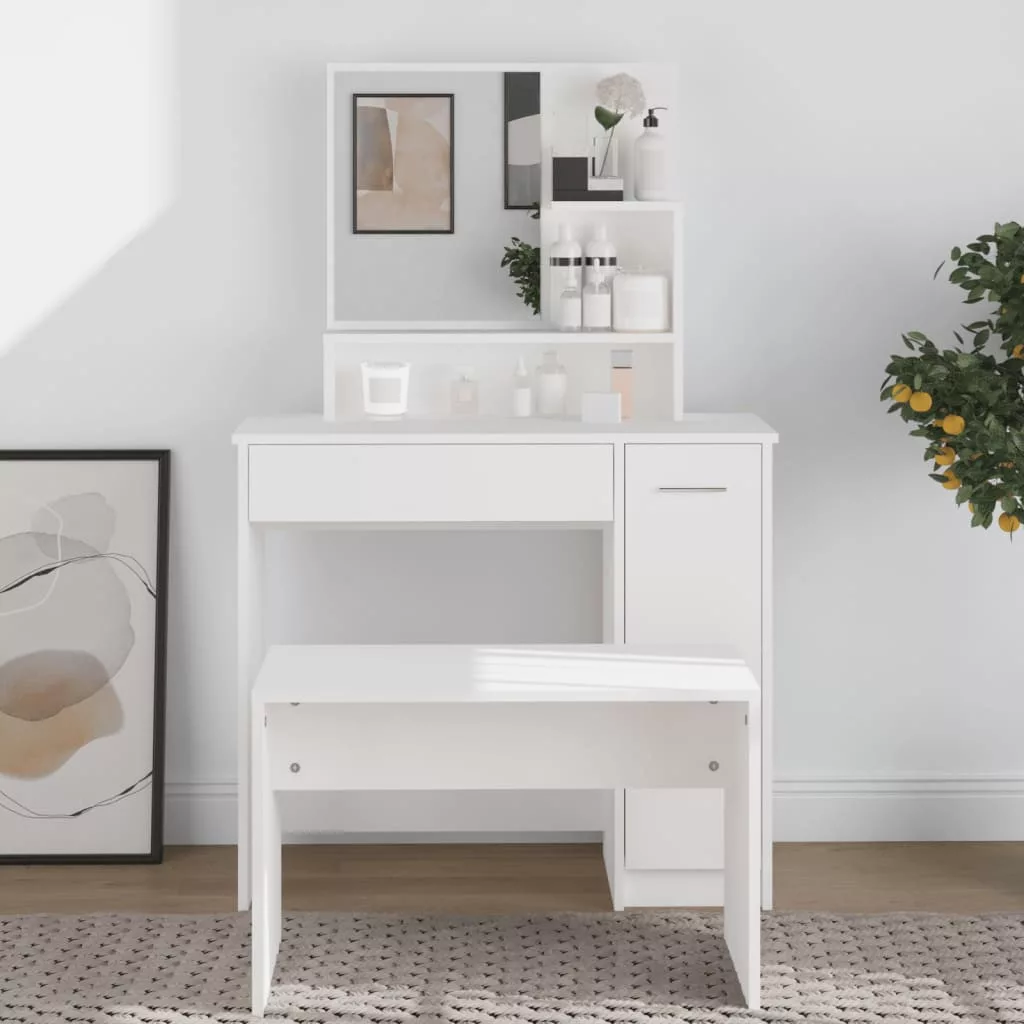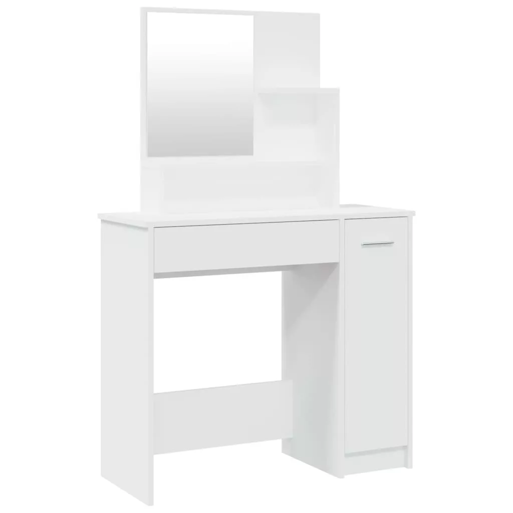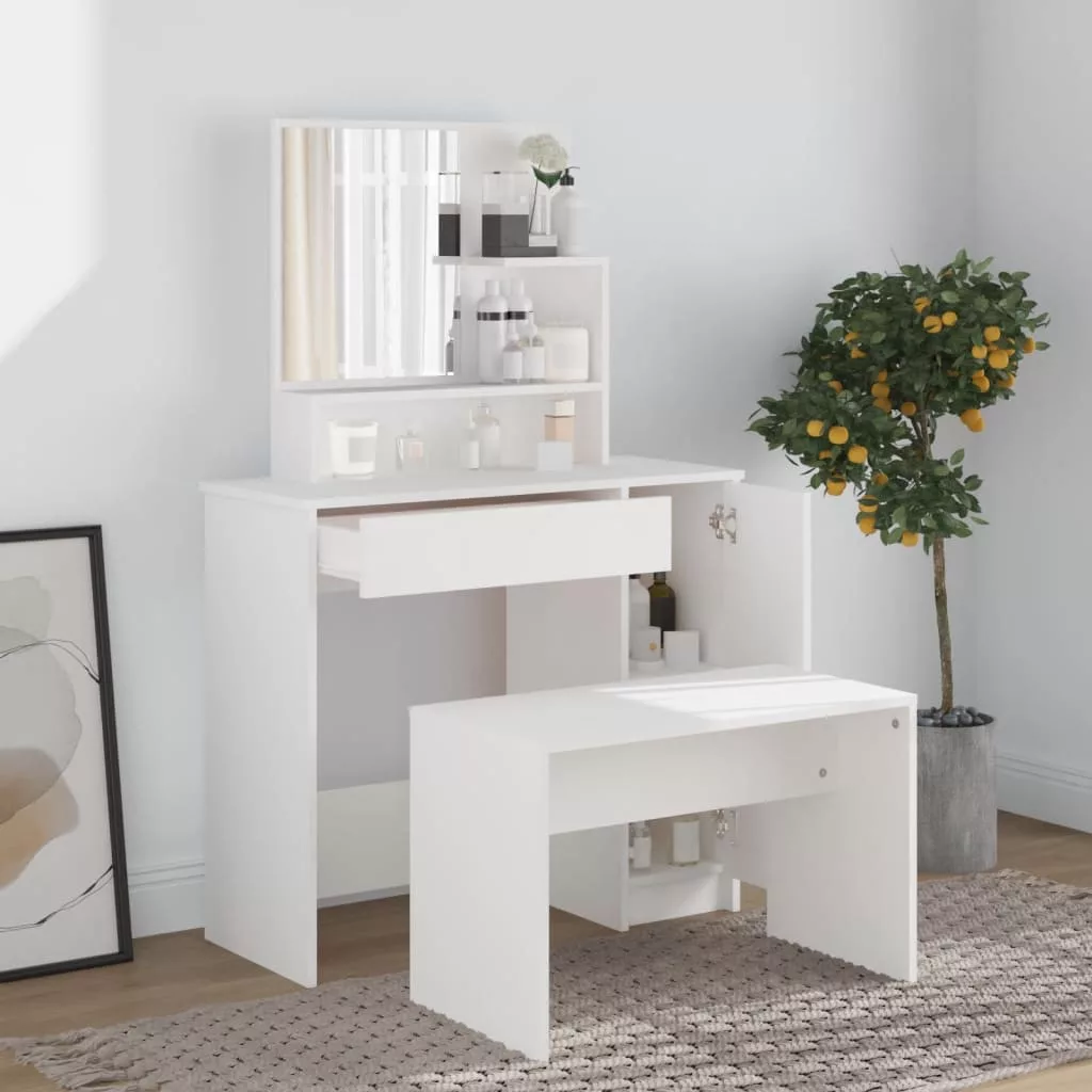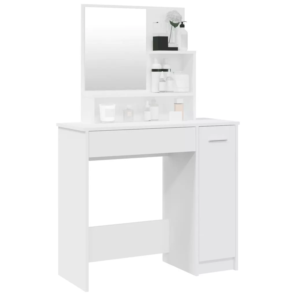 Ez a fésülködőasztal időtlen, kifinomult megjelenést visz hálószobájába. A tükörrel ellátott sminkasztal hálószobája nagyszerű kiegészítője lesz, miközben kézközelben tarthatja kozmetikumait! Prémium minőségű anyag: A szerelt fa kivételes minőségű, sima felületű, szilárd, stabil, és ellenáll a nedvességnek. A szerelt fából készült pipereasztal könnyen tisztítható.Bőséges tárolóhely: A sminkasztal fiókja, rekeszei és nyitott polcai helyet biztosítanak a sminkeszközöknek, és mindennek meglesz a saját helye.Hasznos tükör: A gyönyörű tükör segít a sminkelésben, és elegánsabbá teszi a sminkasztalt.Praktikus ajtó: Tartsa rendben környezetét azzal, hogy a kisebb tárgyakat az ékszerasztal ajtaja mögé rejti. Figyelem:A dőlés megakadályozása érdekében a terméket a mellékelt tartóelem segítségével rögzíteni kell a falhoz. Megjegyzés:Az egyszerű összeszerelés érdekében minden termékhez mellékelünk összeszerelési útmutatót.