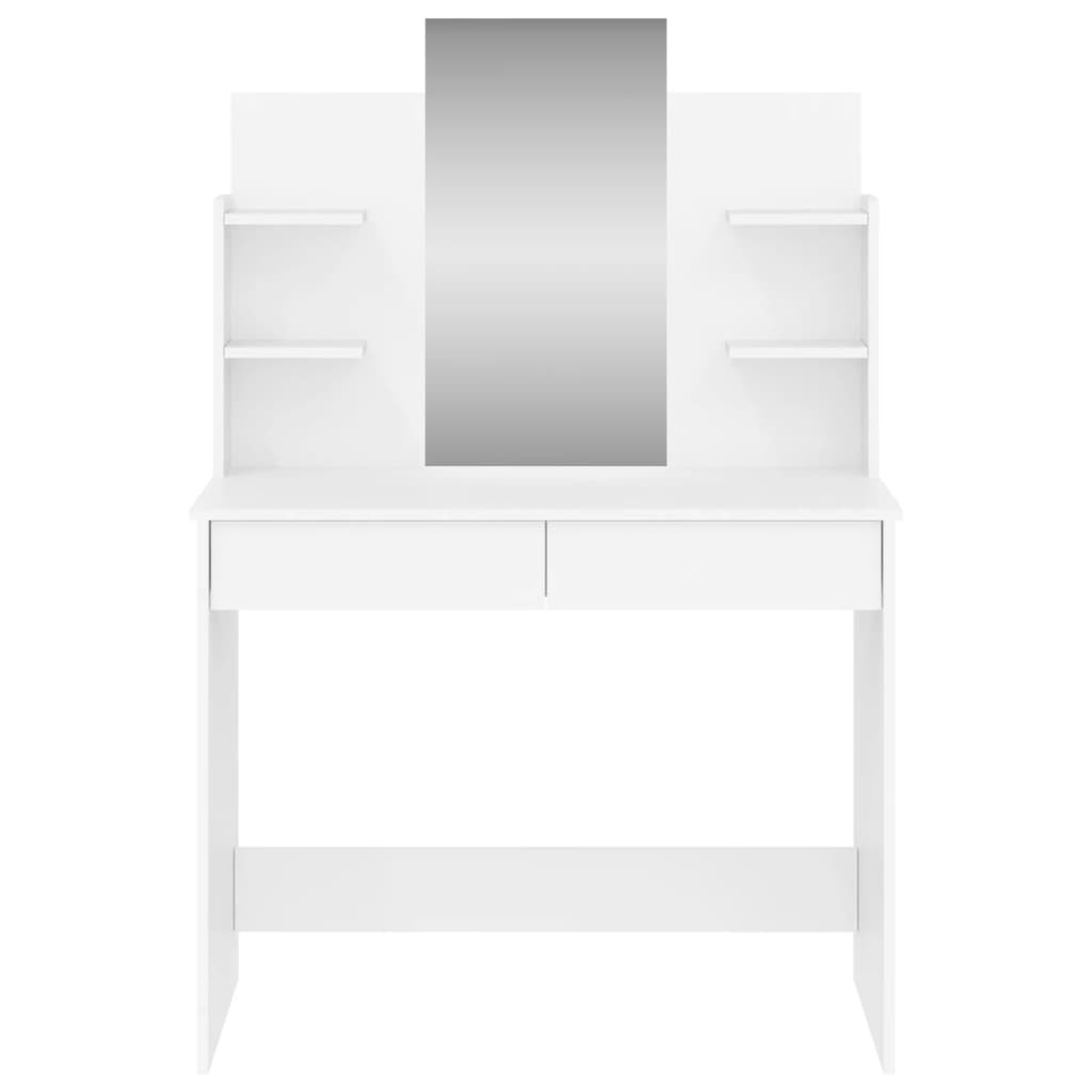 Az időtlen és kifinomult megjelenésű, tükörrel ellátott fésülködőasztal hálószobája berendezésének remek kiegészítője lehet, miközben kozmetikai eszközei mindig kéznél vannak! Tartós anyag: A szerelt fa kivételes minőségű, sima felületű, szilárd, stabil, és ellenáll a nedvességnek. Ez a szerelt fából készült pipereasztal könnyen tisztítható.Bőséges tárolóhely: Ez a fésülködőasztal 2 fiókkal és 4 kis polccal lett ellátva, így bőséges helyet biztosít kozmetikai kellékei rendezett tárolásához.Hasznos tükör: A mellékelt gyönyörű tükör segít a sminkelésben, és elegánsabbá teszi a sminkasztalt. Figyelem:A dőlés megakadályozása érdekében a terméket a mellékelt tartóelem segítségével rögzíteni kell a falhoz.