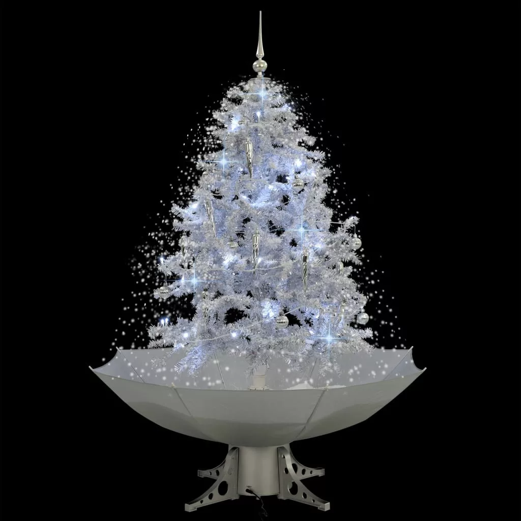 fehér havazó karácsonyfa ernyő alakú talppal 140 cm