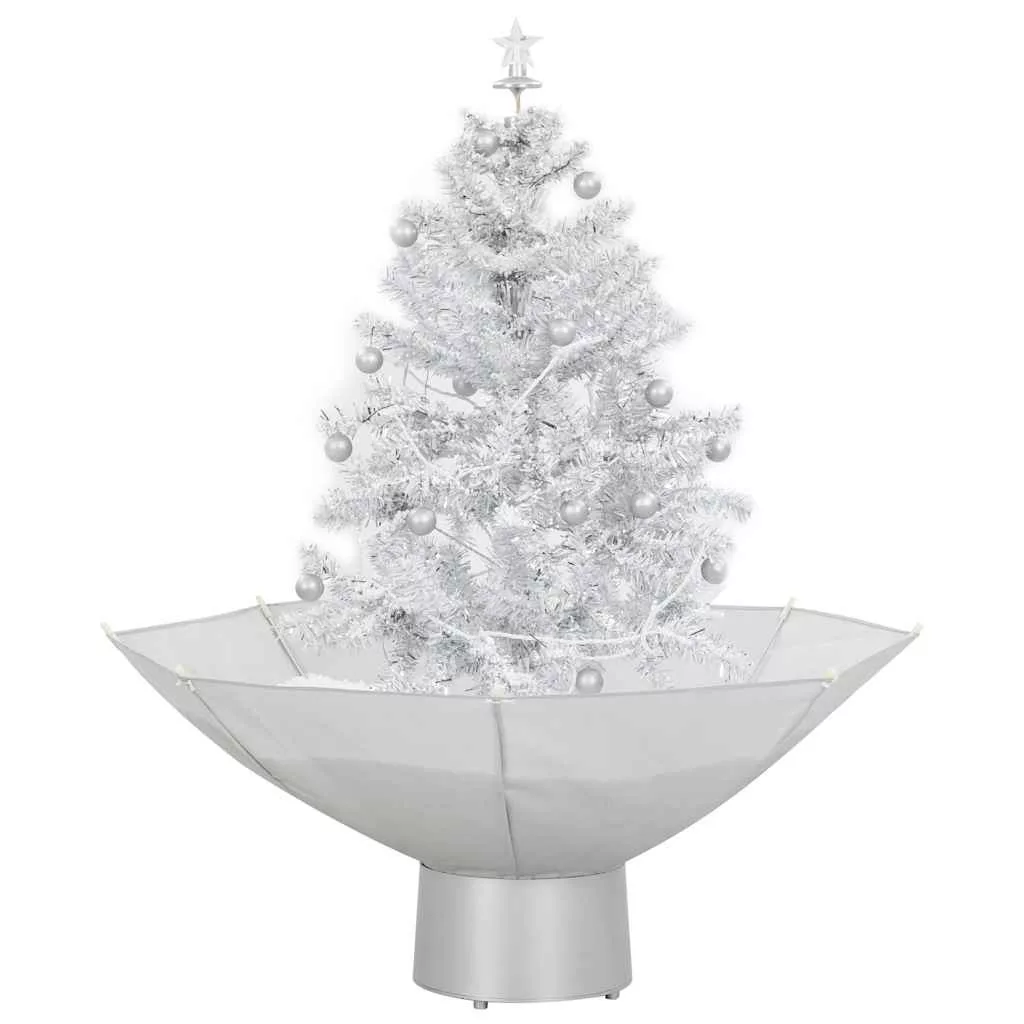 fehér havazó karácsonyfa ernyő alakú talppal 75 cm