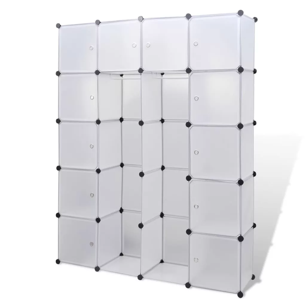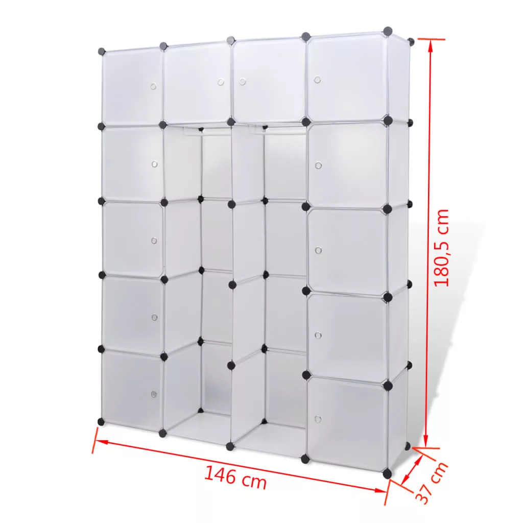 Ez a praktikus variálható szekrény nemcsak rendkívül stílusos, de lehetőséget ad rá, hogy szép rendezetten tárolja benne a ruháit és cipőit. Nagyszerű kiegészítője lehet a gyerekszobának, a nappalinak, az előszobának vagy a hálószobának. Ez a ruhásszekrény műanyag elemekből és krómozott acélhuzalból készült, így könnyen tisztítható. Okos dizájnjának köszönhetően könnyen és gyorsan felállítható különféle módokon, hogy illeszkedjék a térbe vagy épp a hangulatához. Kérjük, ne terhelje túl a polcokat és vegye figyelembe, hogy a műanyag gyúlékony.