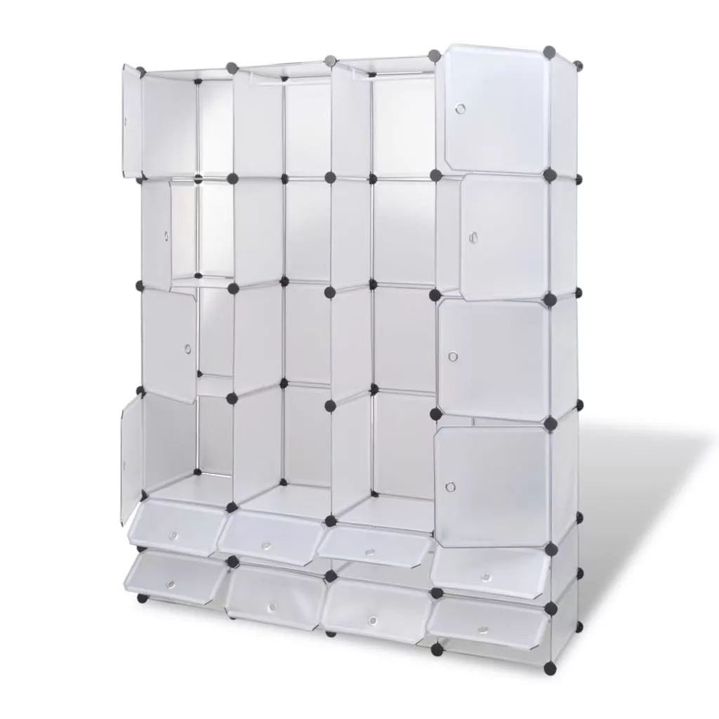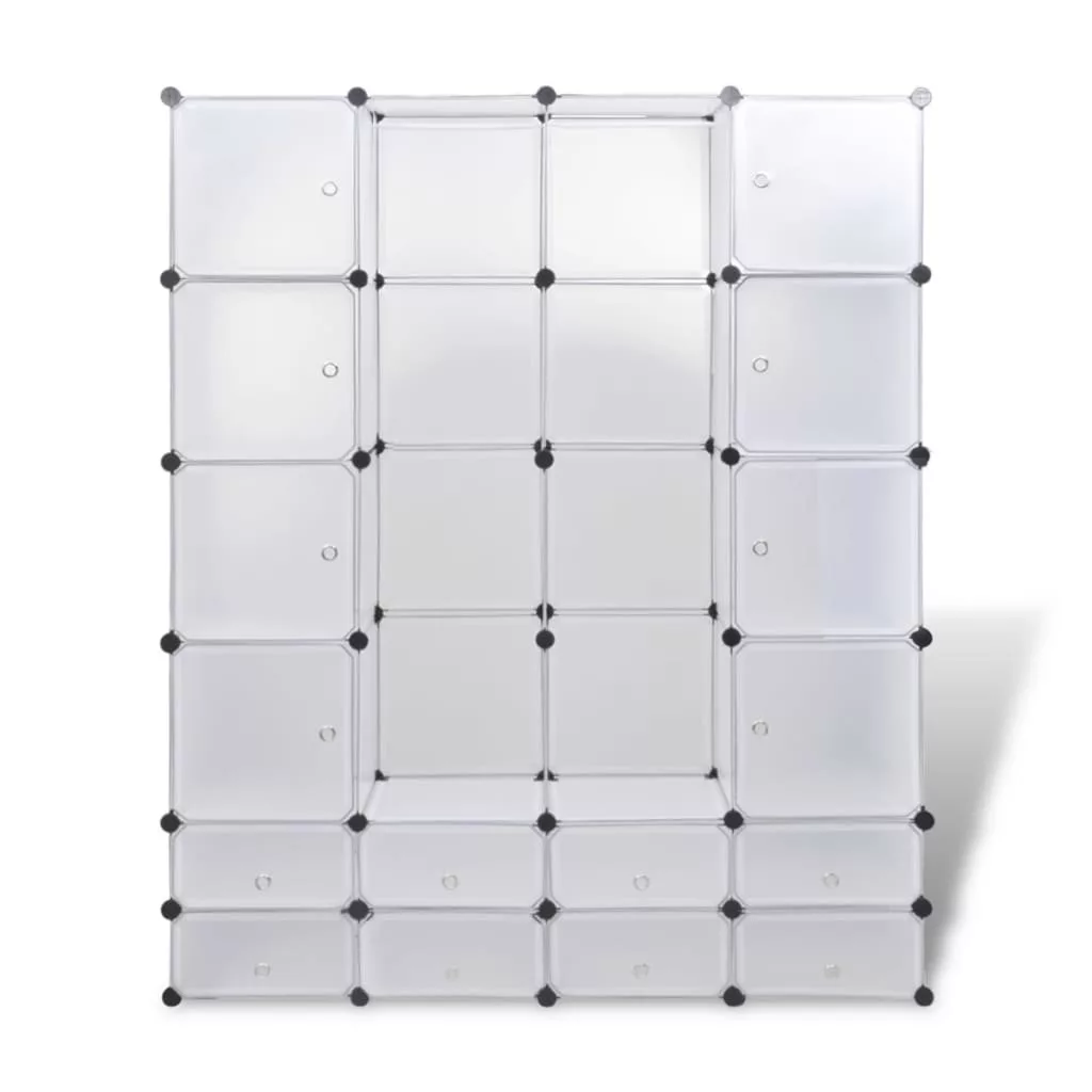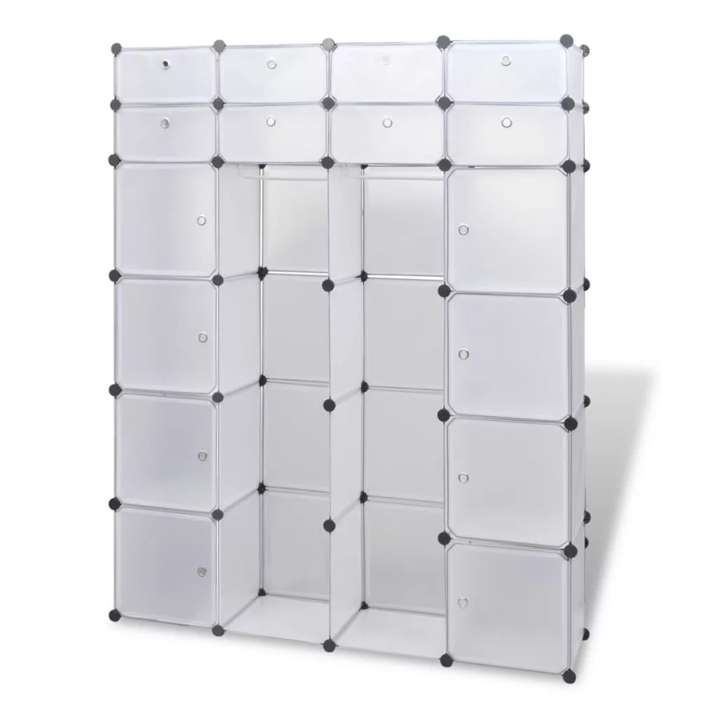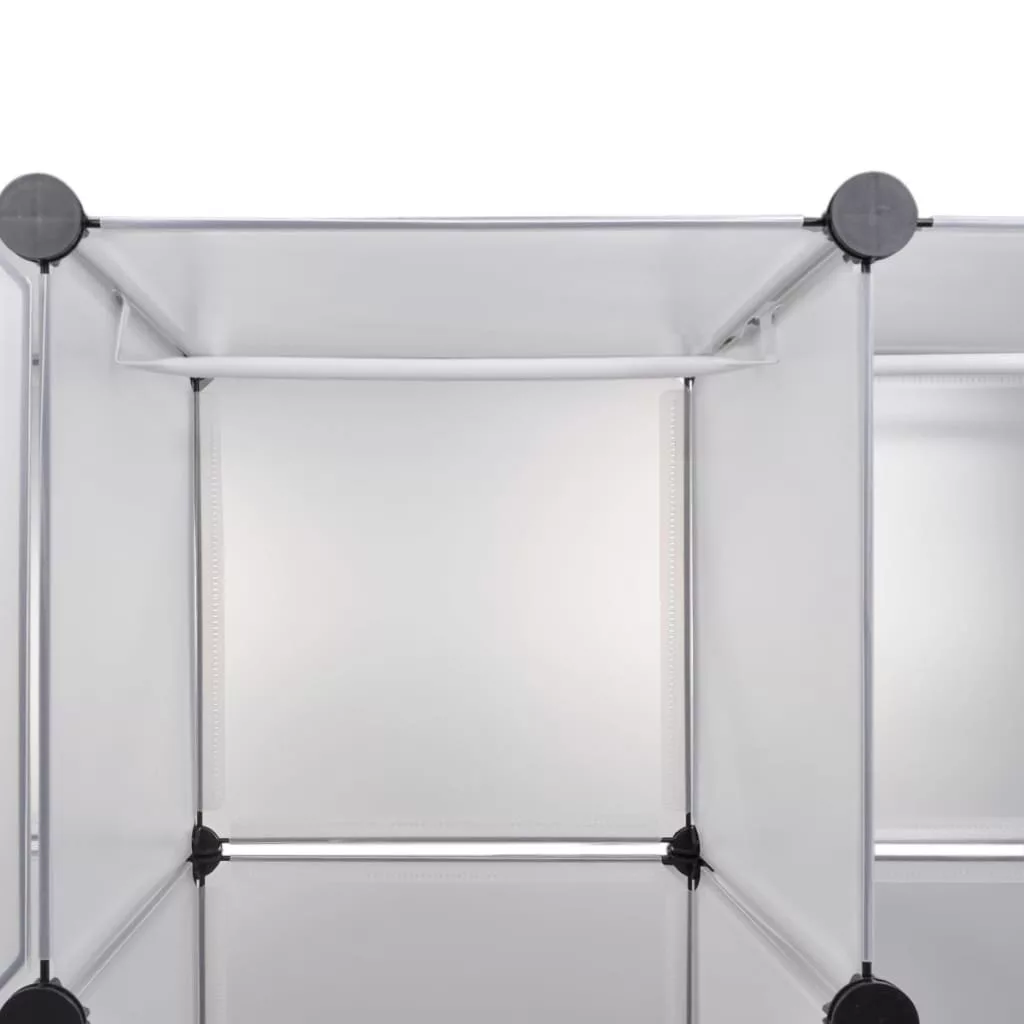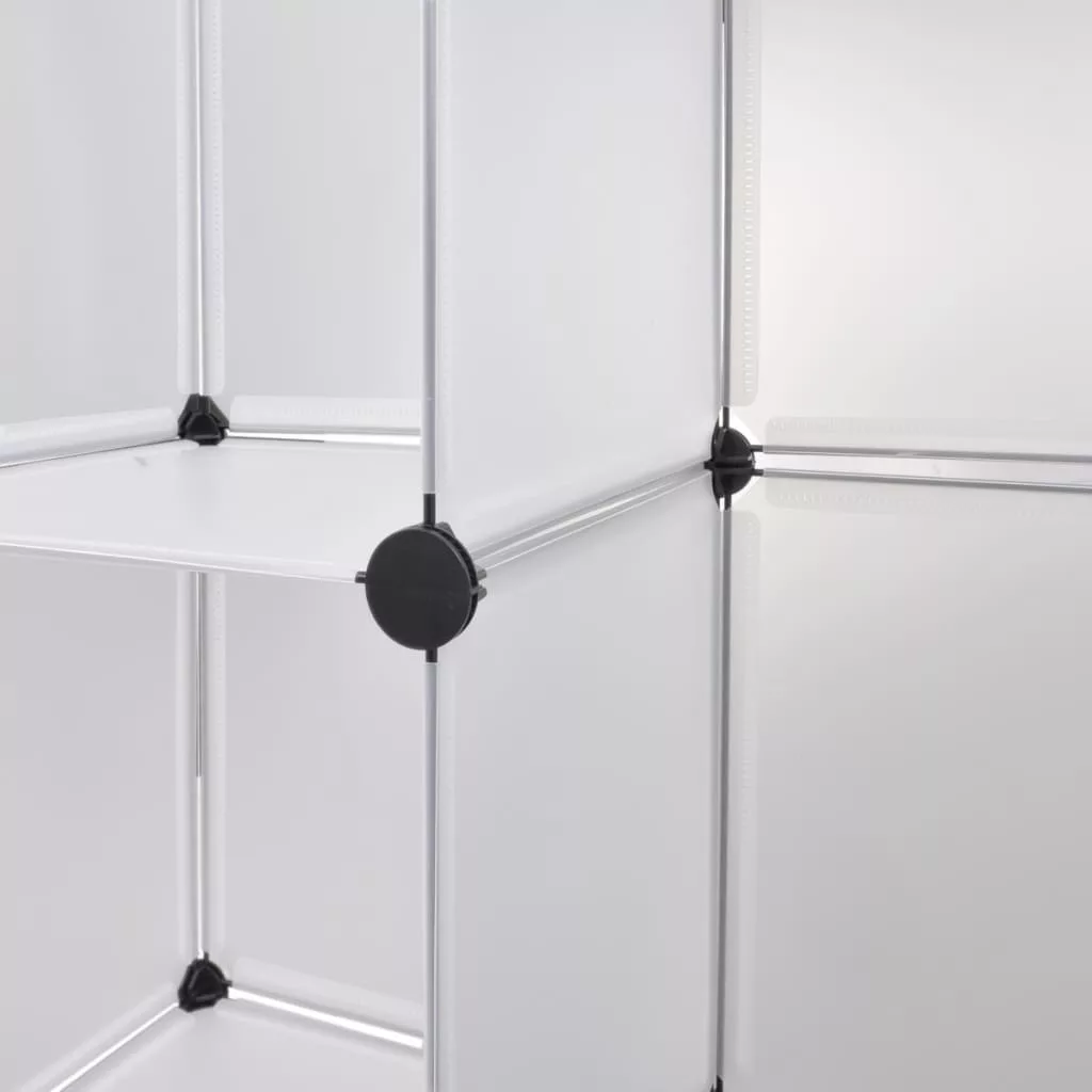 Ez a praktikus moduláris szekrény nemcsak rendkívül stílusos, de lehetőséget ad rá, hogy szép rendezetten tárolja benne a ruháit és cipőit. Remek kiegészítője lesz a gyerekszobának, nappalinak, folyosónak vagy hálószobának. A szekrény műanyag elemekből és krómozott acélhuzalból készült, így könnyen tisztítható. Okos kialakításának köszönhetően a szekrény gyorsan és egyszerűen felállítható különböző módokon, a helynek vagy az Ön hangulatának megfelelően. Kérjük, ne terhelje túl a polcokat és vegye figyelembe, hogy a műanyag gyúlékony.