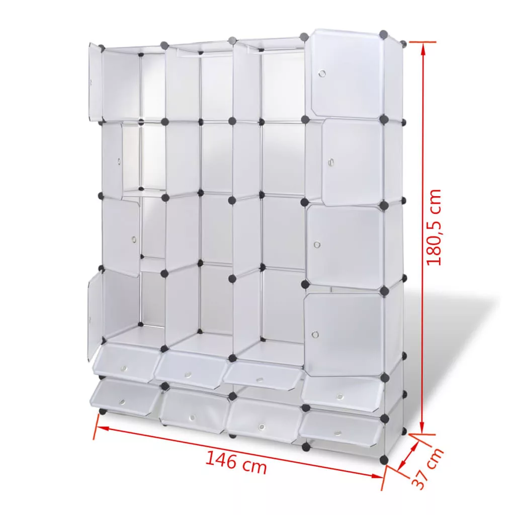 fehér moduláris szekrény 18 rekesszel 37 x 146 x 180,5 cm