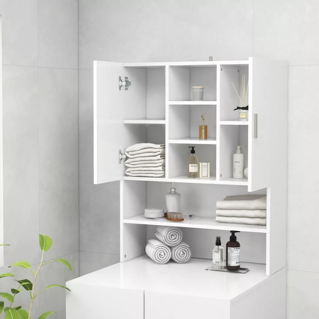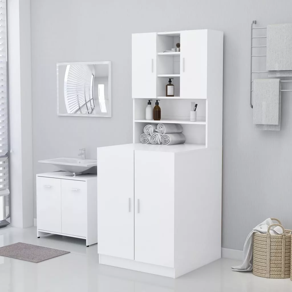 Ezzel a mosógépszekrénnyel további, optimálisan felhasználható tárolóhelyet hozhat létre a fürdőszobájában vagy a mosókonyhájában. A letisztult vonalaknak és a fényes kialakításnak köszönhetően tökéletesen beilleszkedik fürdőszobájába. A fürdőszobai szekrény rendkívül erős és tartós. A fürdőszobaszekrény bőséges helyet kínál mosodai kellékeinek, tisztítószereinek, piperecikkeinek és egyéb tárgyainak rendezett és kézközelben tartásához. Ráadásul a szekrény nedves ruhával könnyen tisztítható.