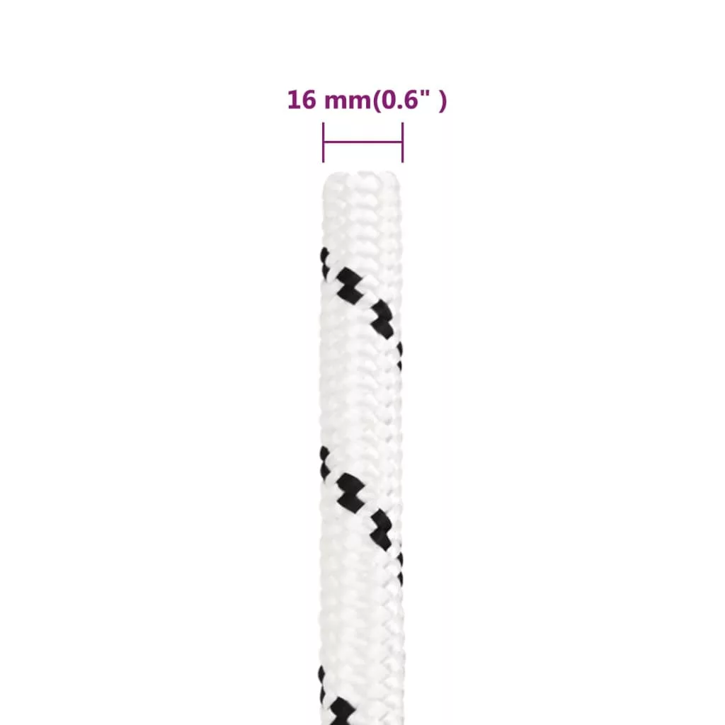 fehér poliészter fonott csónakkötél 16 mm x 25 m