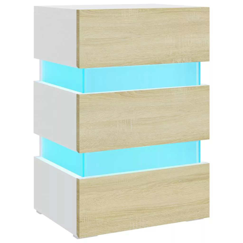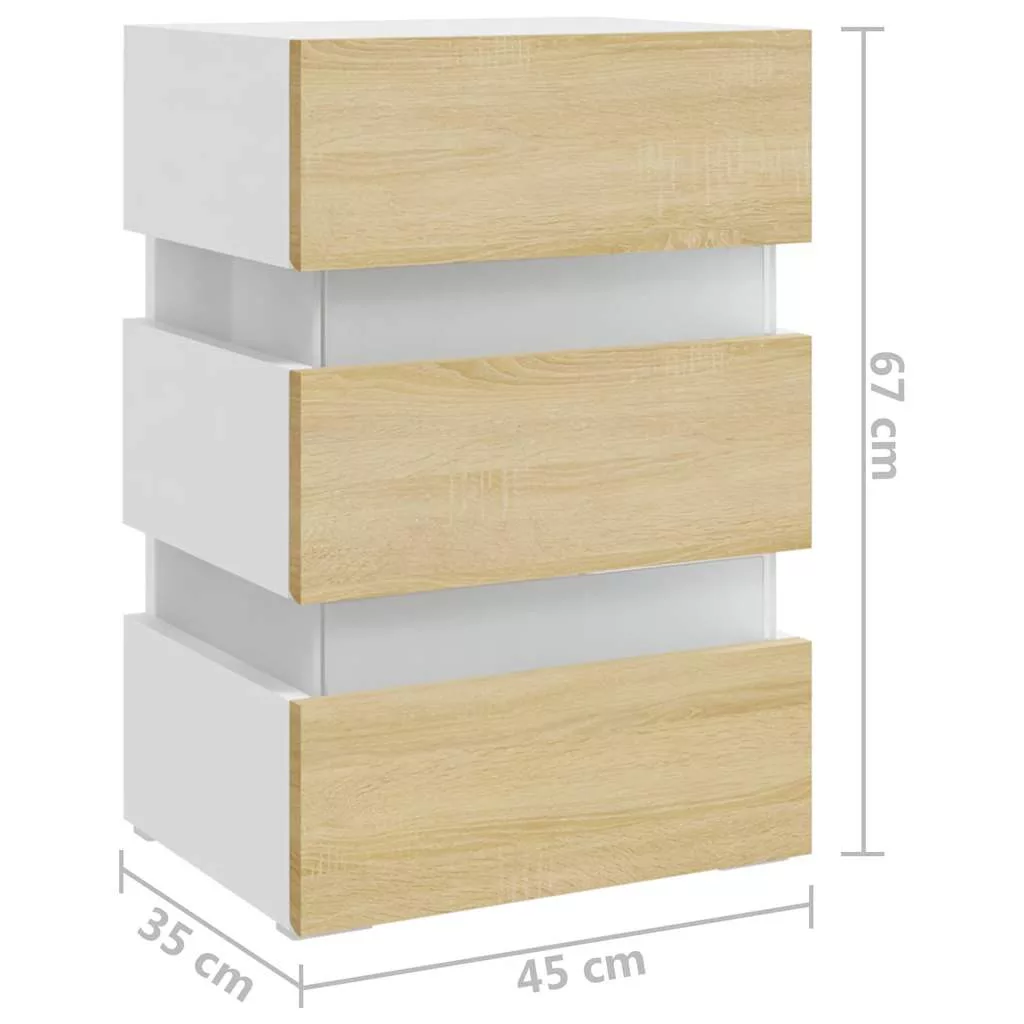 fehér szerelt fa LED-es éjjeliszekrény 45 x 35 x 67 cm