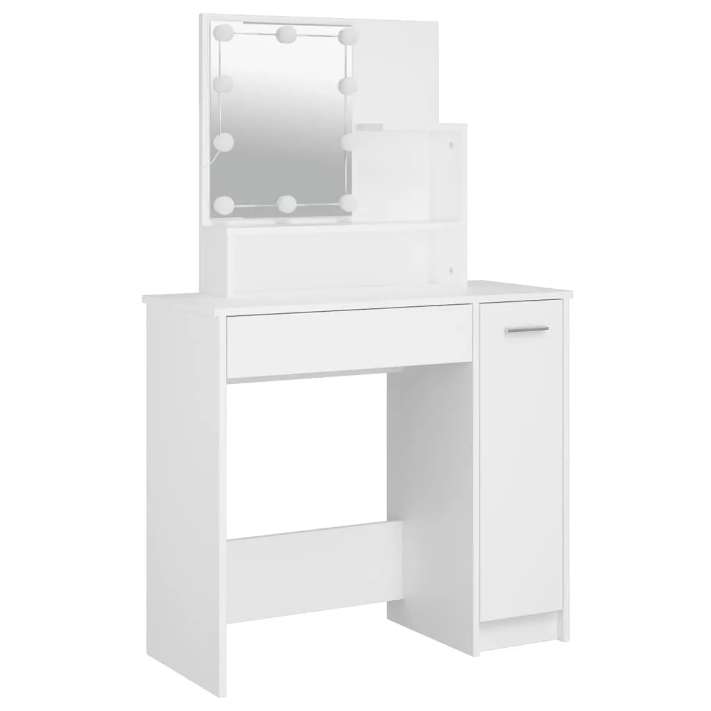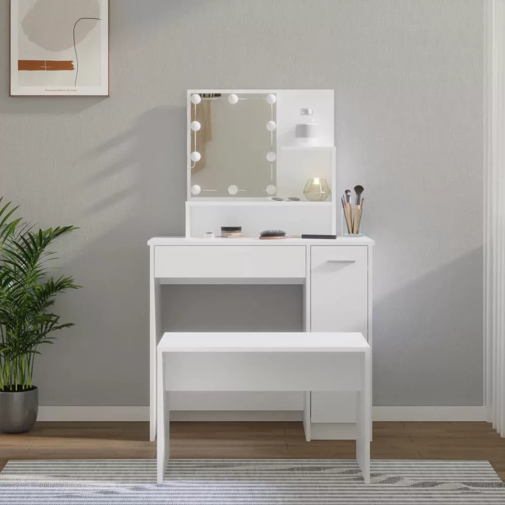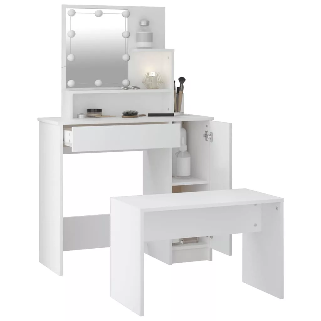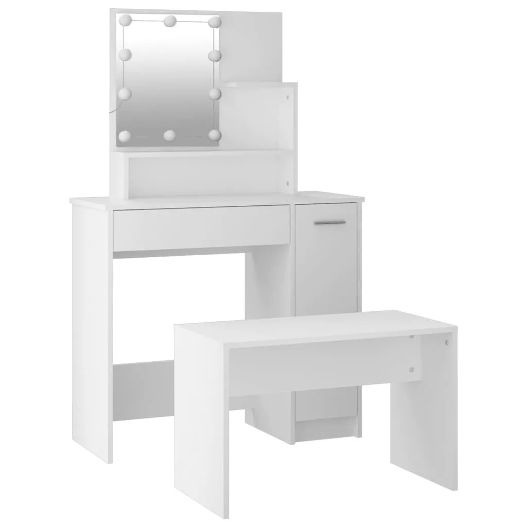 fehér szerelt fa fésülködőasztal-szett LED-ekkel