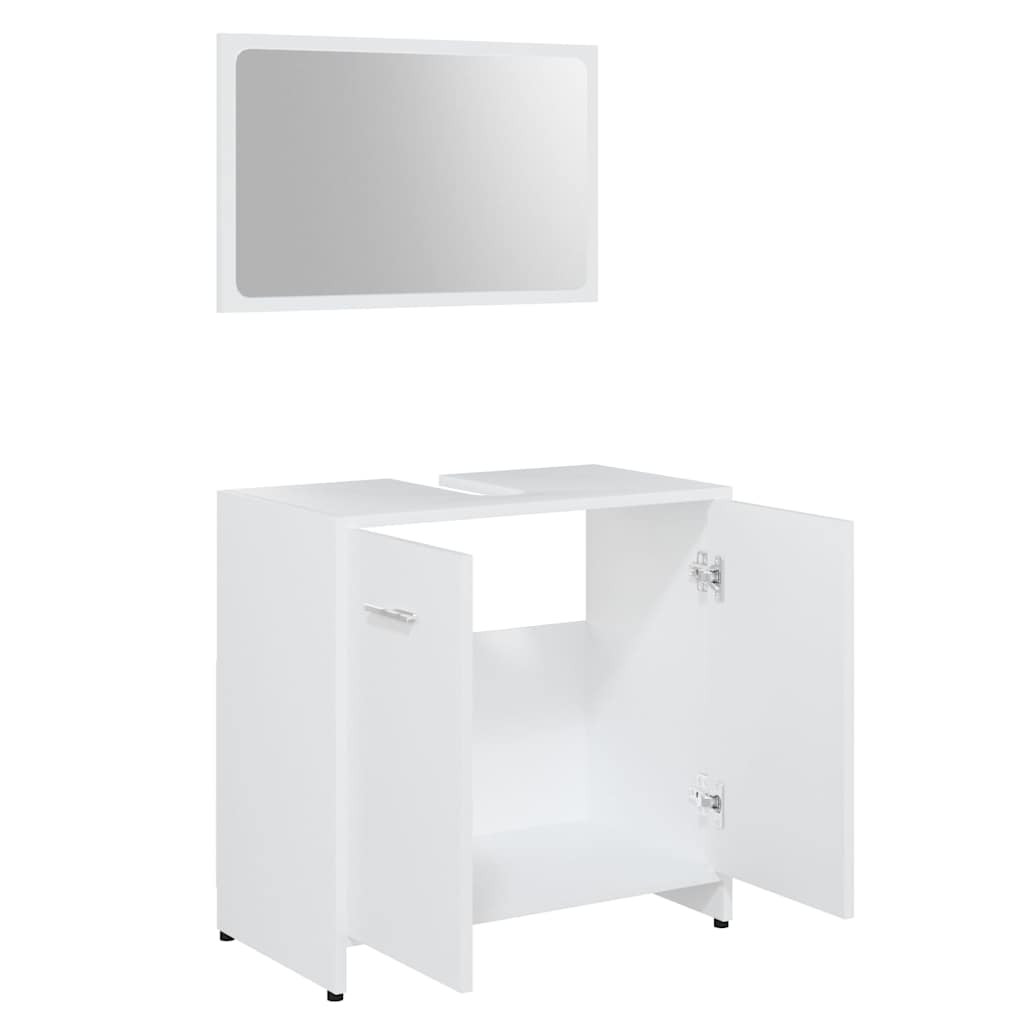 Ezzel a feltűnő és tiszta megjelenésű stílusos fürdőszobabútor-szettel további tárolóhelyet alakíthat ki fürdőszobájában. A letisztult vonalak és az elegáns kialakítás tökéletesen beleolvadnak fürdőszobájába. A tükröt és egy szekrényt tartalmazó bútorkészlet strapabíró és stabil fatermékből készült. Ez az elegáns szekrény 1 rekesszel és 2 ajtóval rendelkezik, bőséges tárolóhelyet kínálva fürdőszobai kellékeinek. A könnyed nyitás-zárás érdekében az ajtók fogantyúkkal vannak ellátva. A tükör remek megjelenéssel ruházza fel otthona lakberendezését. Emellett ez a fürdőszoba-garnitúra nedves ruhával könnyen tisztítható.