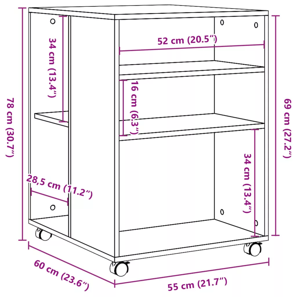 Ez a kisasztal divatos, mégis praktikus kialakításával garantáltan szobája gyöngyszeme lesz.Stabil és tartós anyag: A szerelt fa tartós és stabil anyag sima felülettel, amely ellenáll a nedvességnek, a vetemedésnek és a hasadásnak, így megbízható választás különféle projektekhez.Bőséges tárolóhely: A nyitott kialakítású kisasztal két polccal rendelkezik, így bőséges helyet biztosít alapvető holmijai kézközelben történő rendezett tárolásához.Könnyen mozgatható: Ez a kisasztal a mellékelt négy forgókeréknek köszönhetően könnyen áthelyezhető a kívánt helyre. A kerekek közül kettő lezárható, így a szekrény stabilan a helyén marad.Könnyen karbantartható: Sima felületének köszönhetően a kisasztal könnyen tisztítható egy ruhával, és kevés karbantartást igényel.Széleskörű felhasználás: Ez az időtlen stílusú kisasztal saját igényei szerint használható a nappaliban, a konyhában vagy a hálószobában.