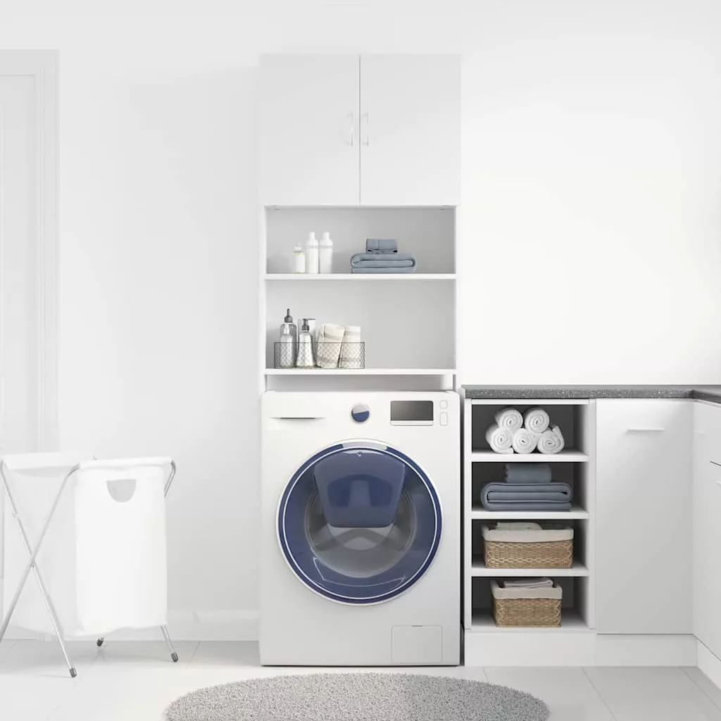 fehér szerelt fa mosógépszekrény 64 x 24 x 190 cm