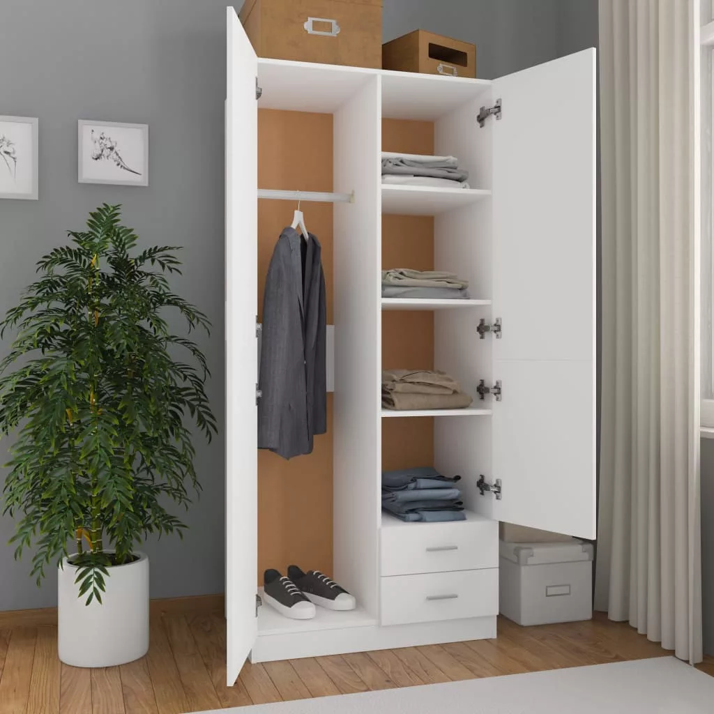 Ebben a kompakt ruhásszekrényben könnyen elérhető helyen tarthatja ruháit és napi kiegészítőit. Tökéletes tárolóhelyet biztosít, és egy csipetnyi eleganciával ruházza fel otthonát. A ruhásszekrény szerelt fából készült, amely erőt, tartósságot és hosszú élettartamot biztosít. 2 fiókot és 1 nagy akasztórúddal ellátott rekeszt tartalmaz, így bőséges helyet kínál mind a hosszabb ruhák, mind az összehajtogatott ruhák vagy kiegészítők, például pulóverek, farmerek, sapkák, kézitáskák stb. A terméket könnyű tisztítani. A ruhásszekrény könnyen összeszerelhető.
