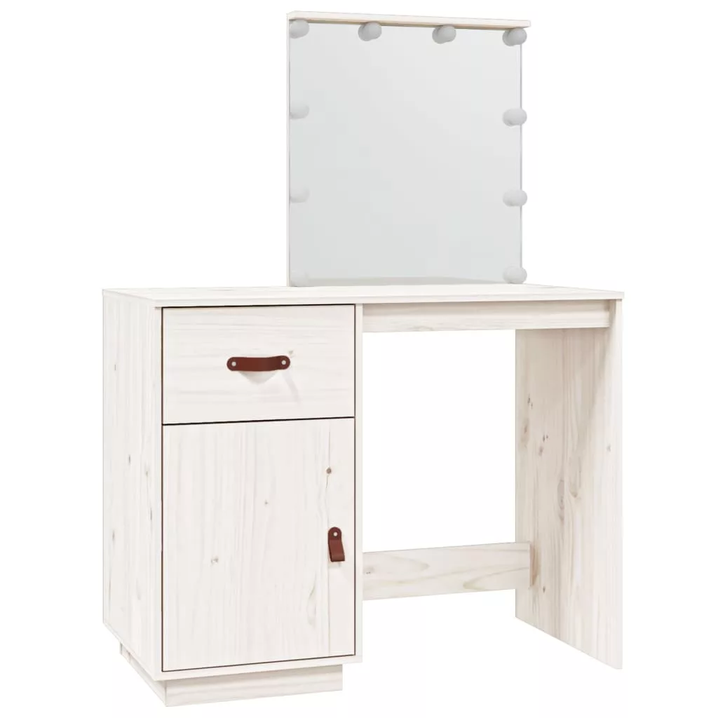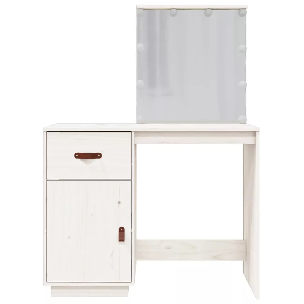 fehér tömör fenyőfa fésülködőasztal LED-del 95 x 50 x 133,5 cm
