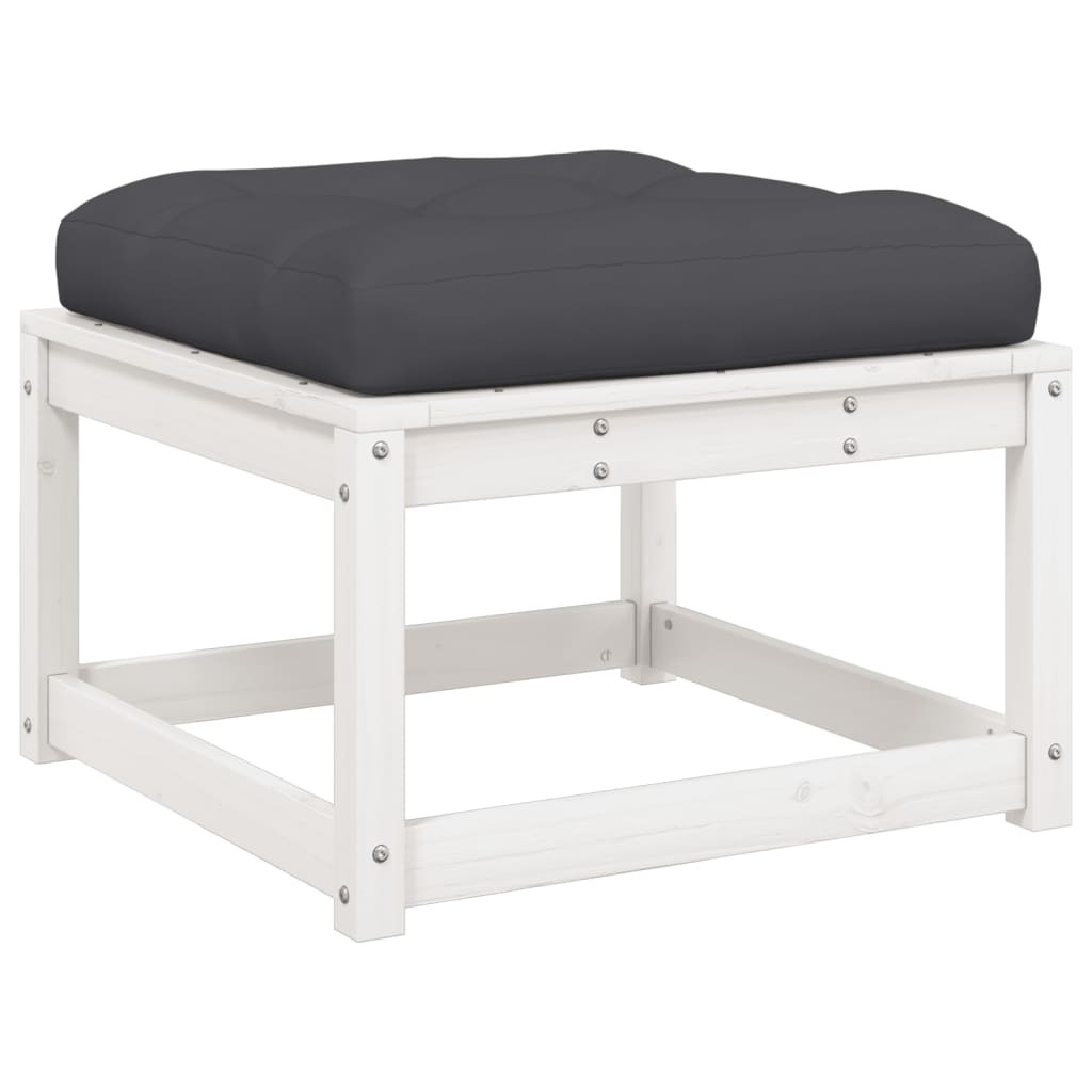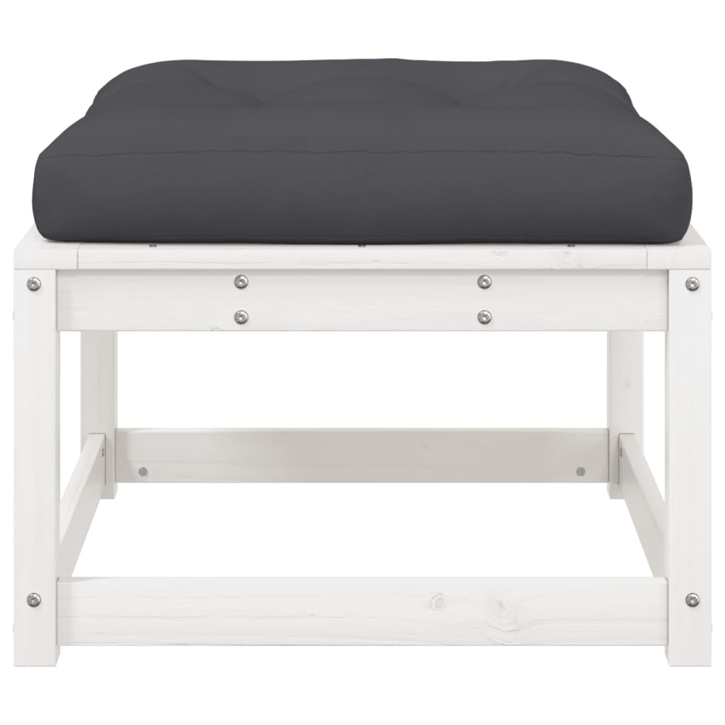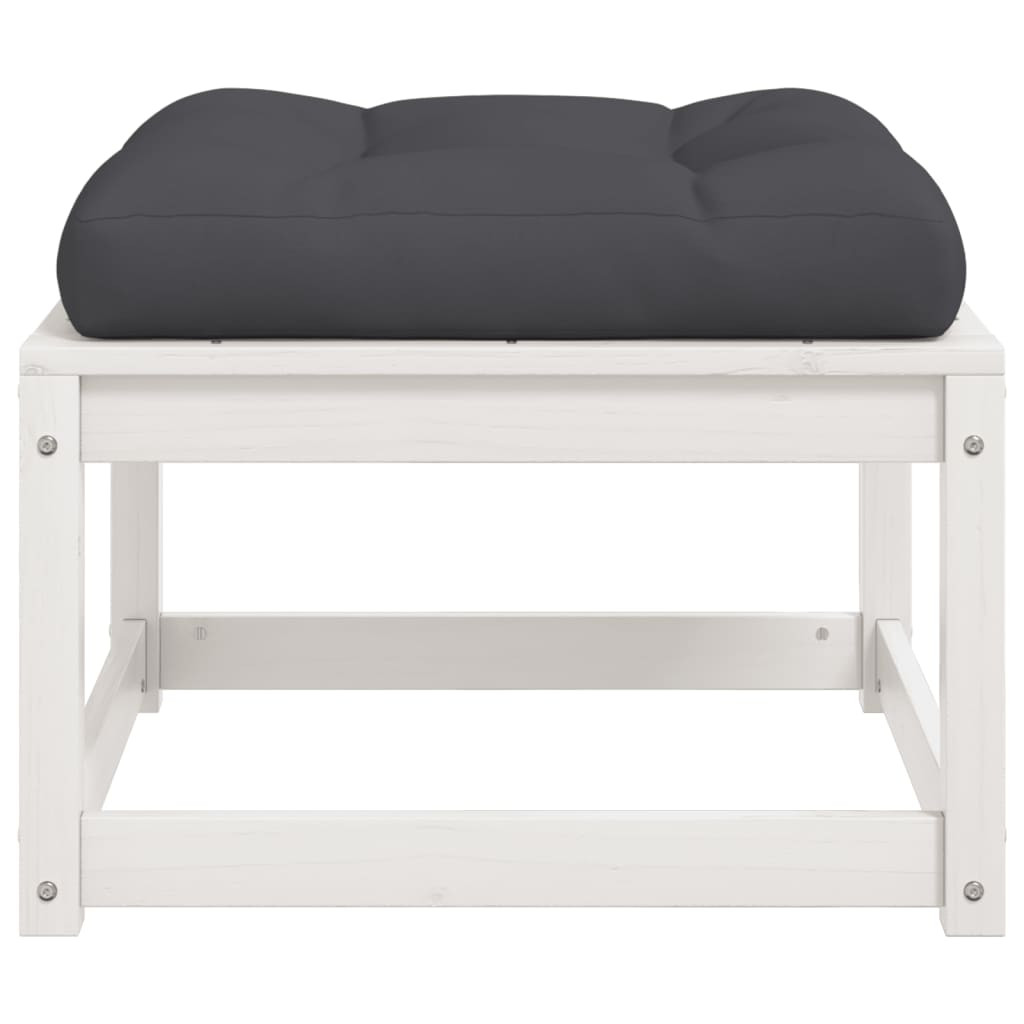 fehér tömör fenyőfa kerti lábzsámoly párnával