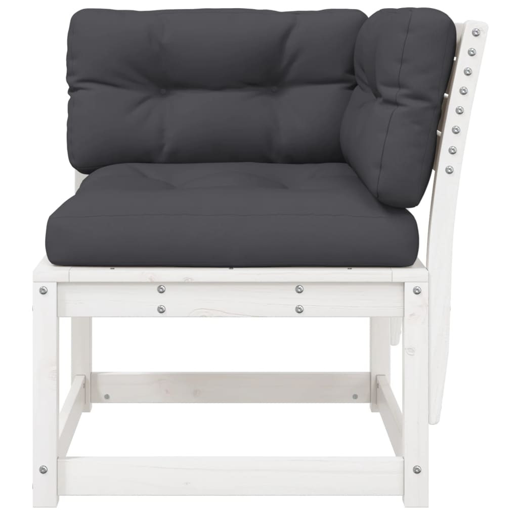 fehér tömör fenyőfa kerti sarokkanapé párnával 73 x 73 x 78 cm