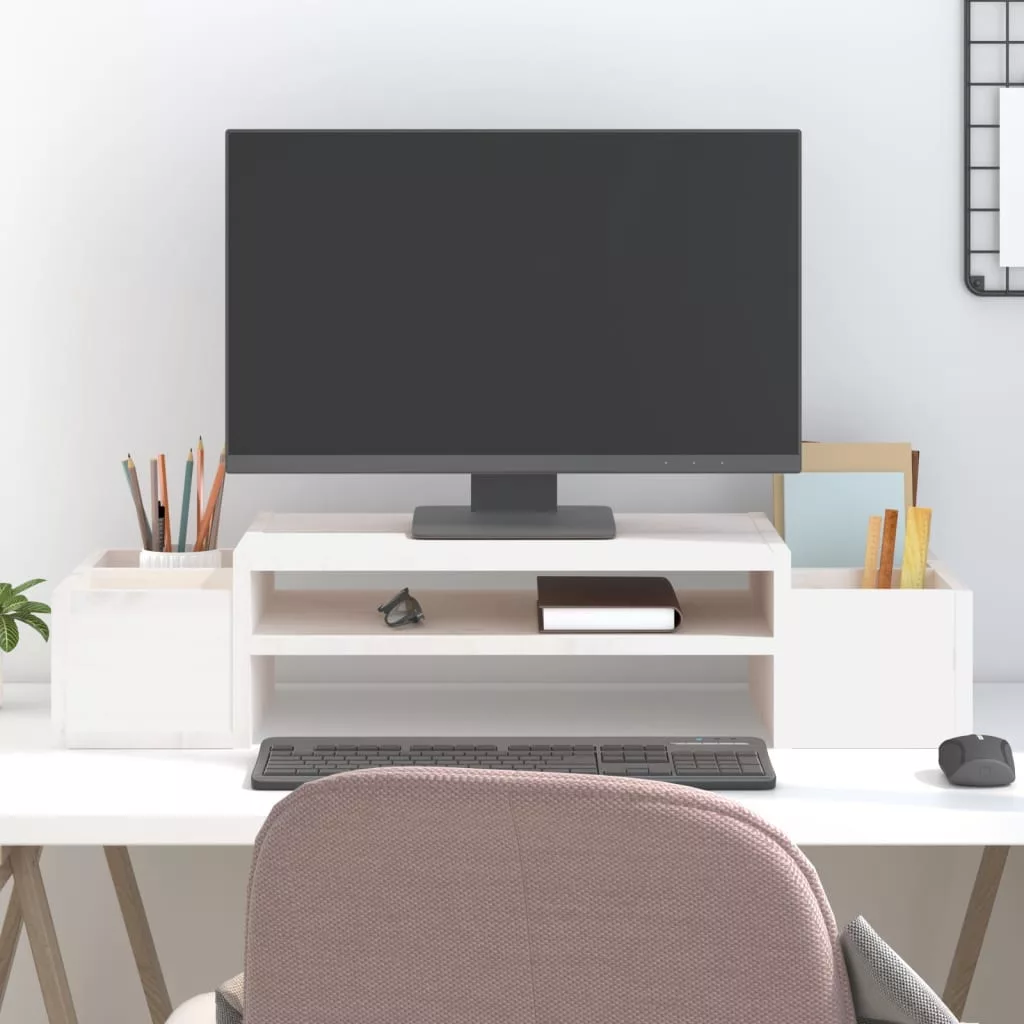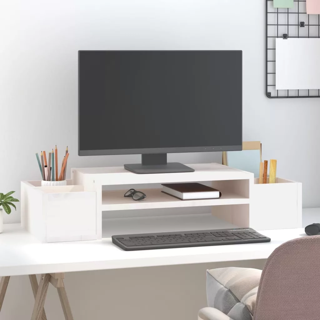 fehér tömör fenyőfa monitorállvány 70x27,5x15 cm