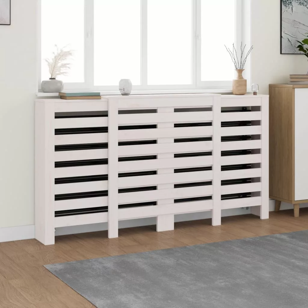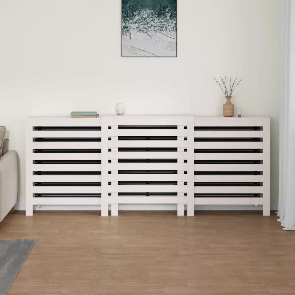 fehér tömör fenyőfa radiátorburkolat 210x21x85 cm