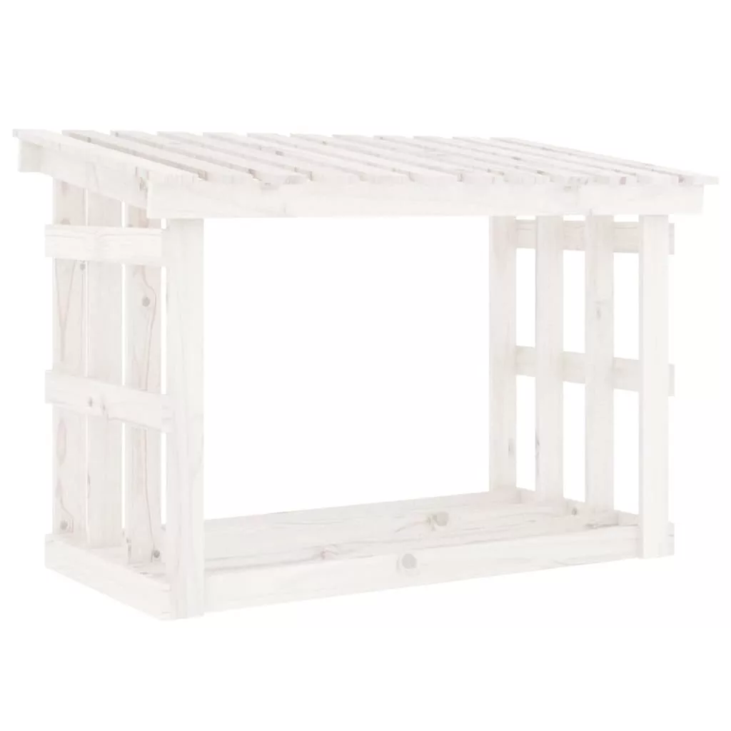 fehér tömör fenyőfa tűzifatartó állvány 108x64,5x77 cm
