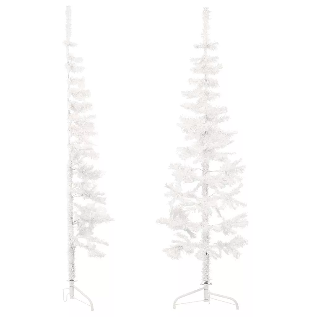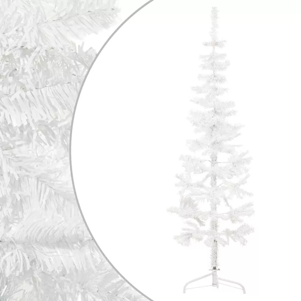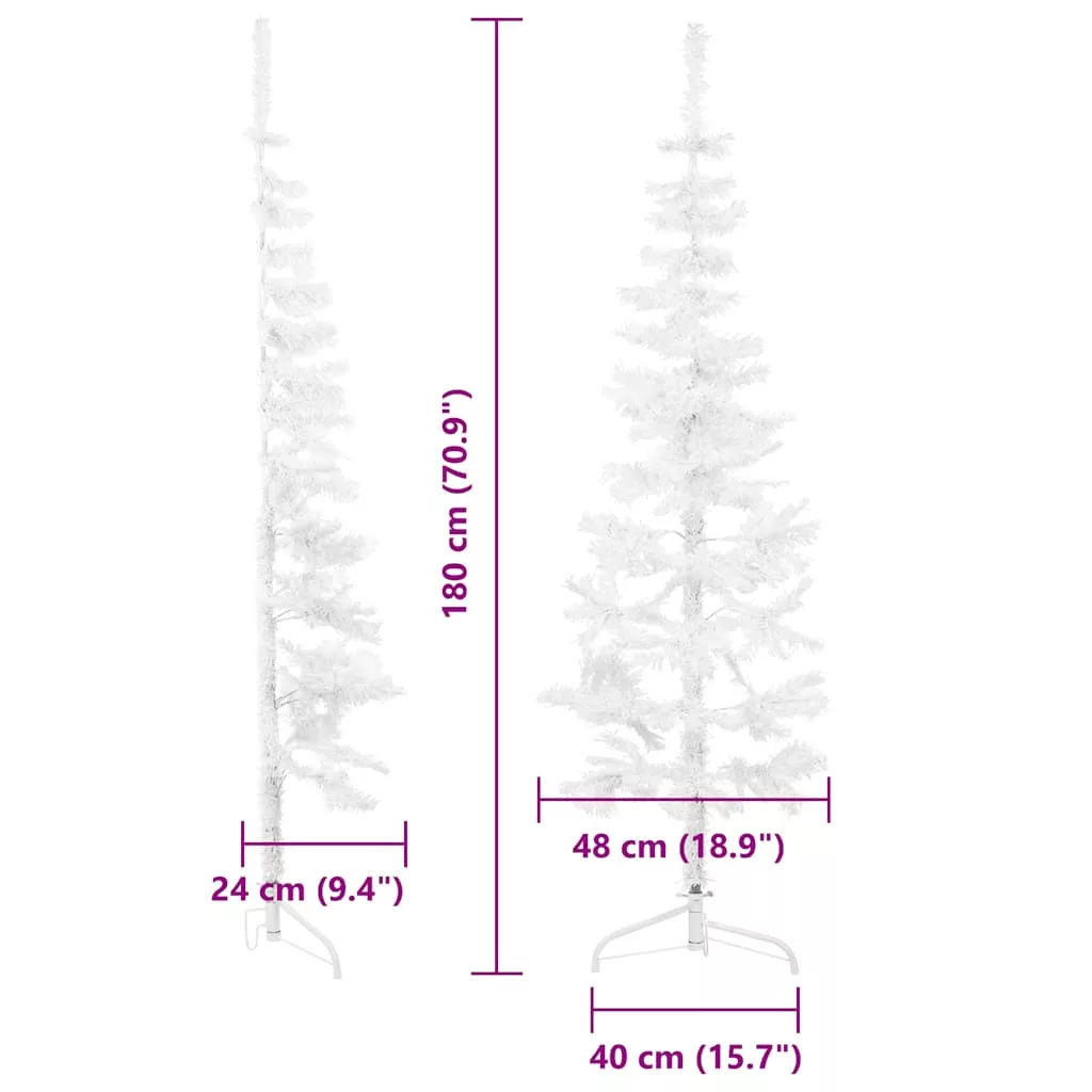 fehér vékony fél műkarácsonyfa állvánnyal 180 cm