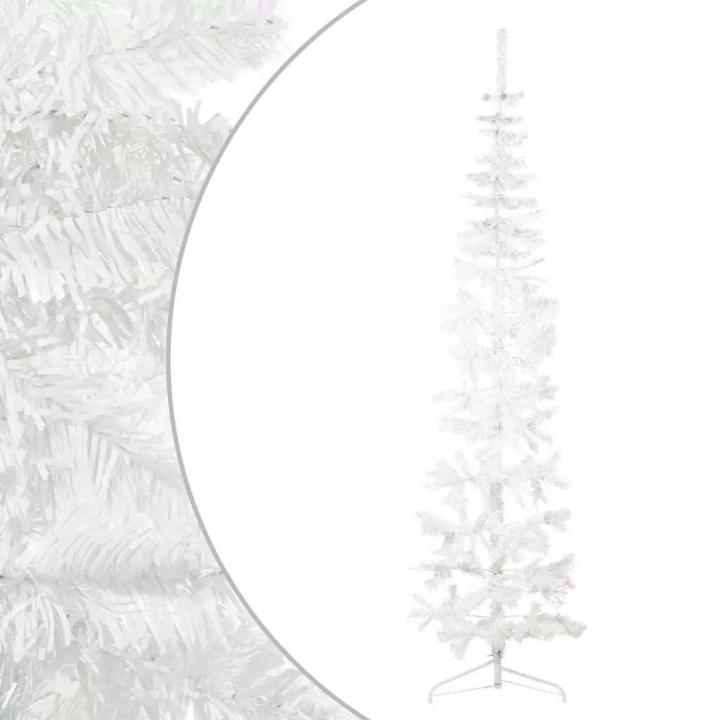 fehér vékony fél műkarácsonyfa állvánnyal 210 cm