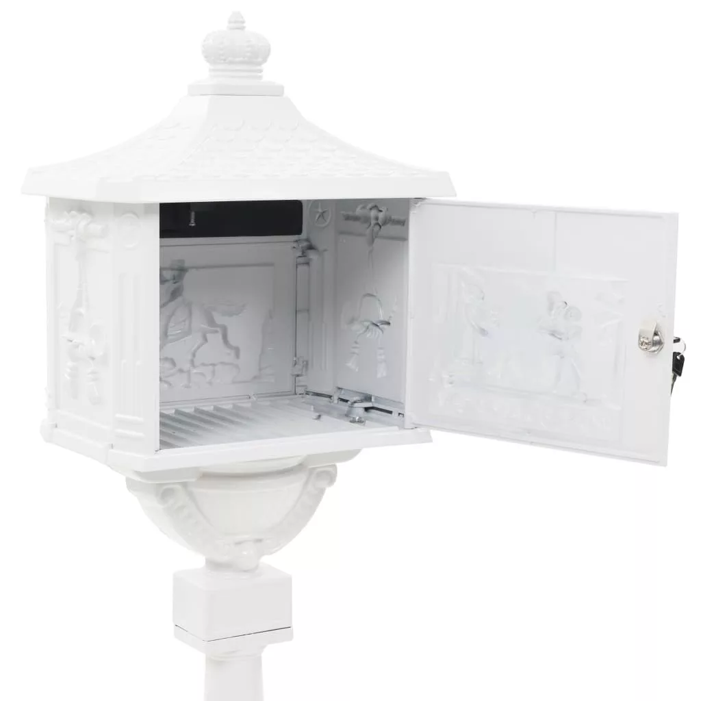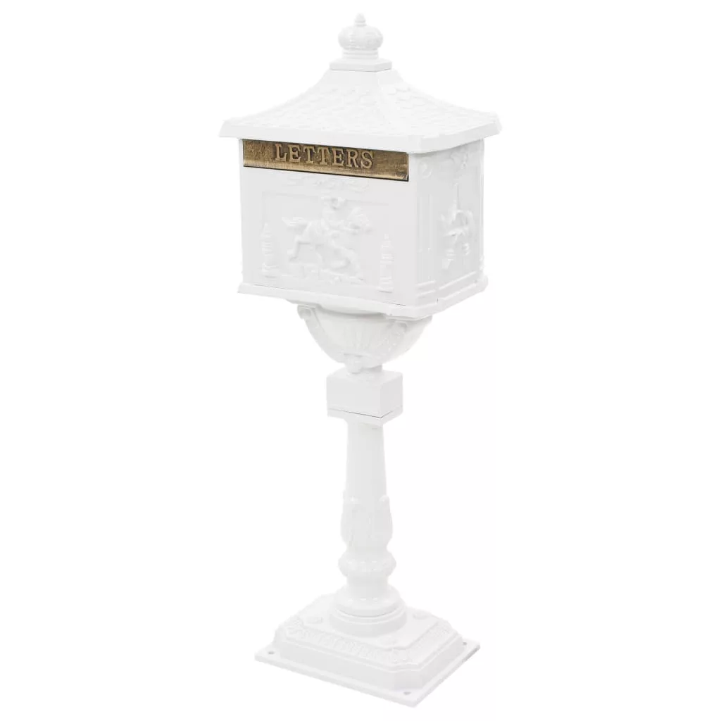 Ez a gyönyörű, antik stílusú álló postaláda nem csak praktikus, de mutatós darab lesz kertjében, otthona bejáratánál, vagy cége székhelyén. A postaláda széles bedobónyílással rendelkezik, amelynek csapófedele a postaláda tartalmát megóvja az időjárás viszontagságaitól. Zárható ajtaján – melyhez 2 kulcs jár – könnyen kivehetőek a levelek. A levélszekrény időjárásálló és rozsdamentes alumíniumöntvényből készült, így különösen alkalmas kültéri használatra. Remekbe szabott régimódi díszítőelemek sokasága pompázik rajta – kocsibejárója vagy kerti járdája mellett mindenki figyelmét fel fogja kelteni.