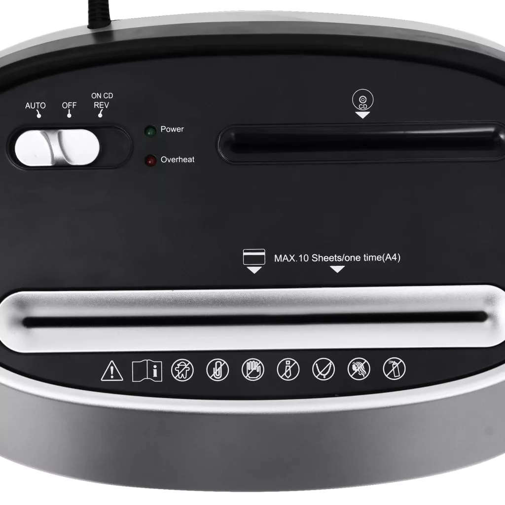 Ez az iratmegsemmisítő egyszerű módot kínál a nem kívánt személyes dokumentumok gyors és biztonságos aprítására. Ez az iratmegsemmisítő 10 papírlapos kapacitású, és hitelkártyákat, CD-ket, gemkapcsokat és kapcsokat is képes keresztbe vágva felaprítani. A hulladékot egy kompakt méretű, 20,8 L méretű tartályba gyűjti. Az iratmegsemmisítő alacsony, 68 dB-es zajszinttel rendelkezik, így munka közben nem fogja zavarni. Megsemmisíti az elavult és bizalmas dokumentumokat, és anyagot biztosít a papír-újrahasznosításhoz. Ezt a készüléket nem használhatják csökkent fizikai, érzékszervi vagy szellemi képességű, illetve tapasztalattal és tudással nem rendelkező személyek (beleértve a gyermekeket is), kivéve, ha a biztonságukért felelős személy felügyeli őket, vagy utasításokat kaptak a készülék használatára vonatkozóan. Ez a termék nem játék. Ne engedje, hogy gyerekek játsszanak a készülékkel.