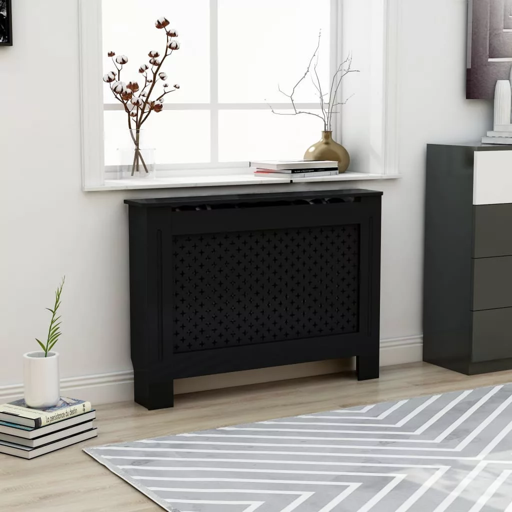 fekete MDF radiátorburkolat 112 x 19 x 81,5 cm