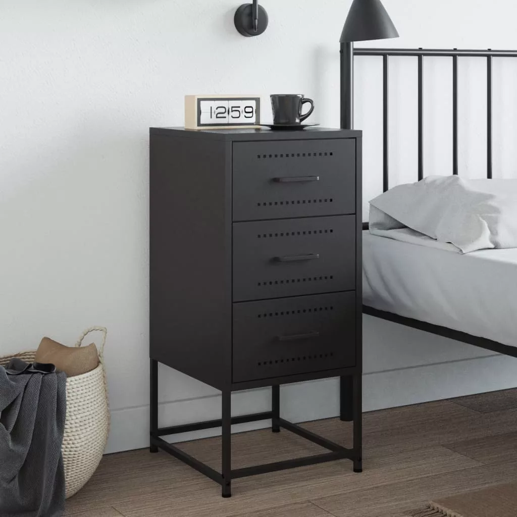 fekete acél éjjeliszekrény 36 x 39 x 78 cm