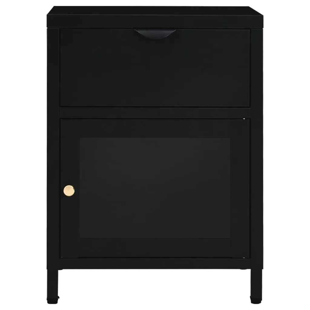 fekete acél és üveg éjjeliszekrény 40 x 30 x 54,5 cm