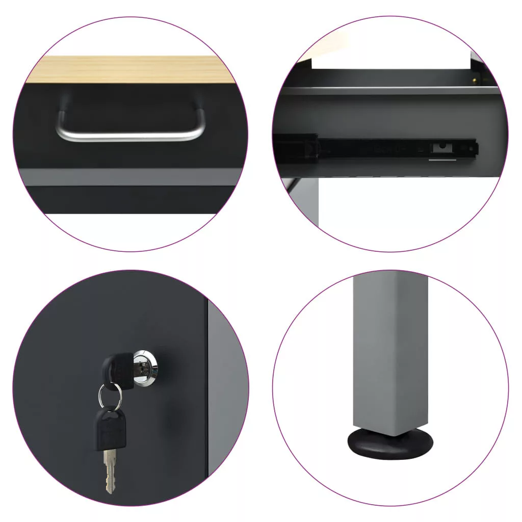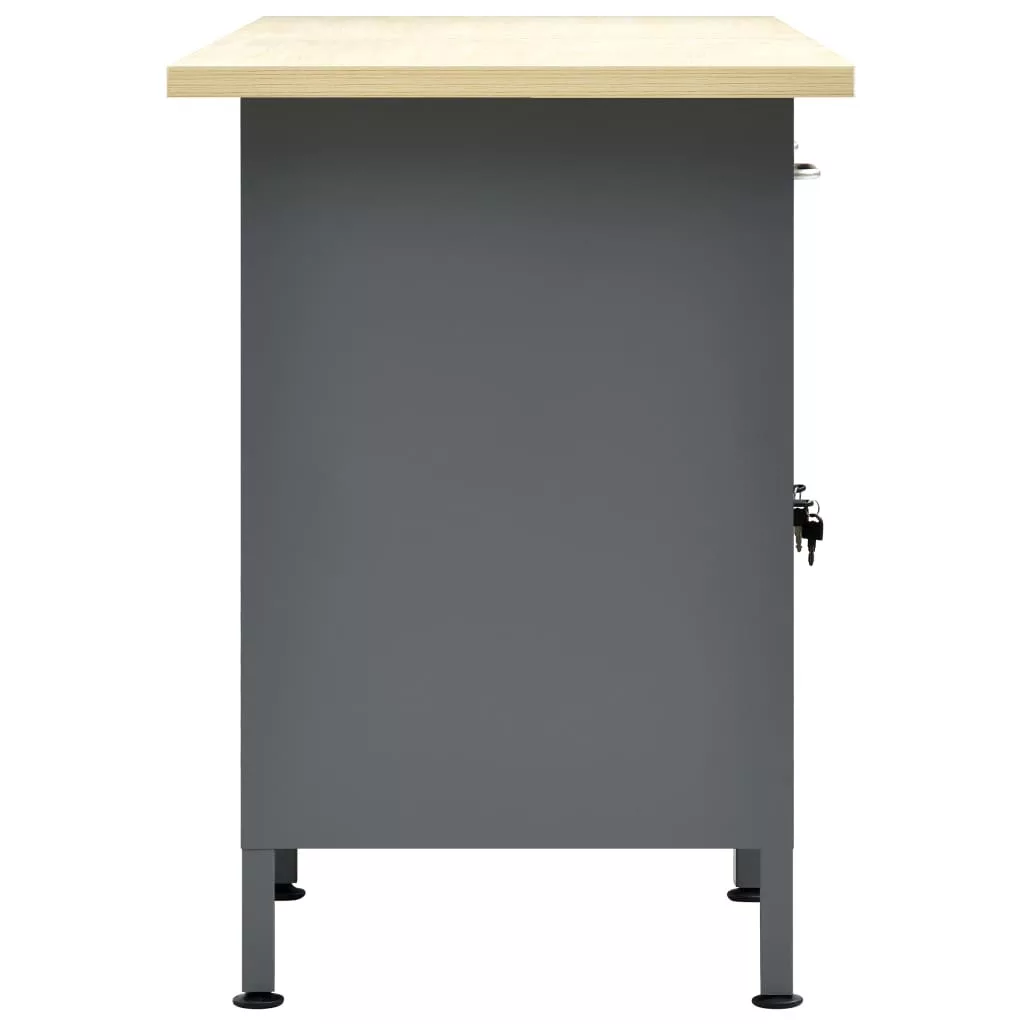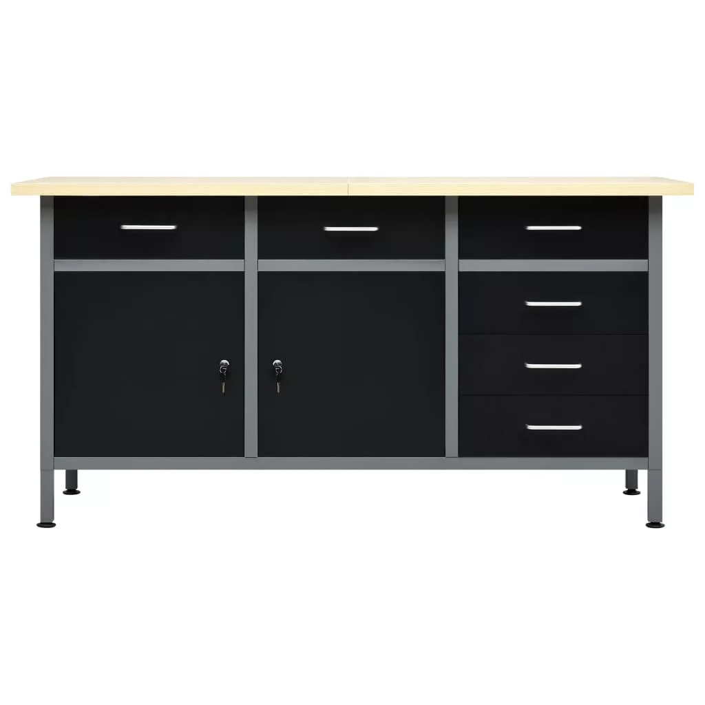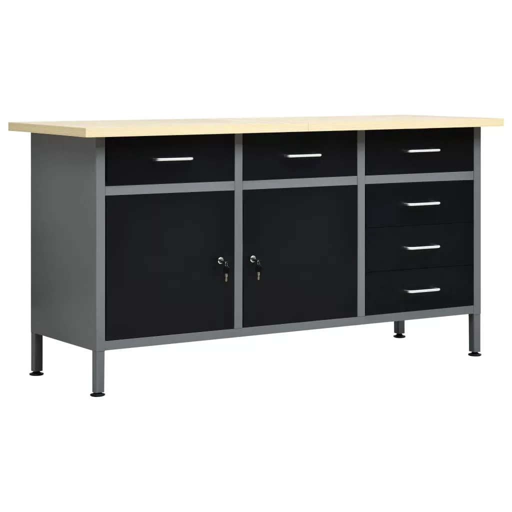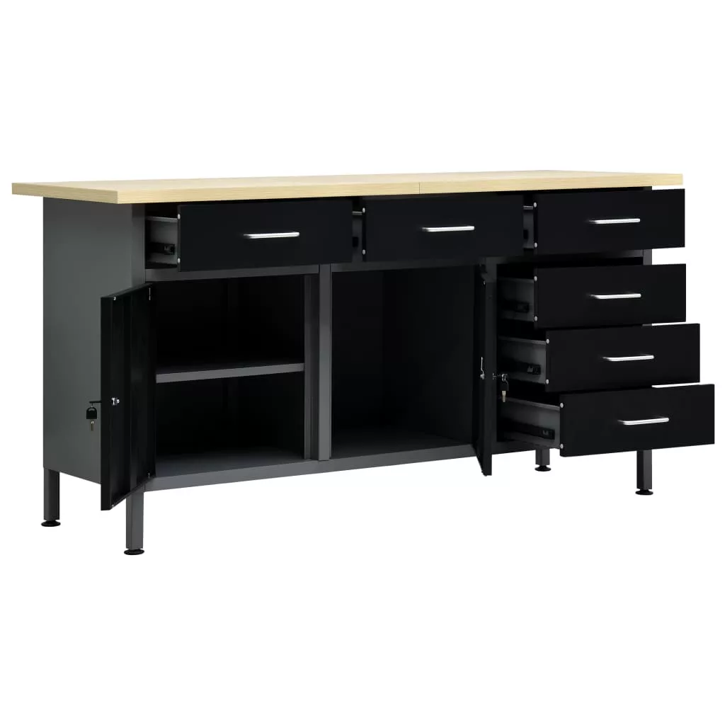 Ez a strapabíró munkapad bőséges tárolóhelyet biztosít; teherbírása 500 kg. Elengedhetetlen kiegészítője lesz műhelyének vagy garázsának. A nagy, masszív asztallap stabil helyet biztosít barkácsmunkáihoz. A munkapad 6 fiókkal lett ellátva, így rendszerezve tárolhatja különböző szerszámait, alkatrészeit és kellékeit, például csavarokat, szögeket és ragasztószalagokat. A fiókok golyóscsapágyas szerkezettel rendelkeznek, így könnyen kihúzhatóak. A nagyobb szerszámokat a két, zárható ajtós szekrényben tárolhatja, melyekben könnyen helyet találhat fúróinak, kábeldobjainak és csiszolóinak. Ráadásul a lábak magassága állítható; a munkapadot oda teheti, ahol épp szüksége van rá, hiszen egyenes és egyenetlen talajon is stabilan áll. Ez a munkaasztal prémium minőségű acélból és szerelt fából készült, így rendkívül strapabíró, tartós és könnyen tisztítható. Összeszerelése egyszerű. A munkapad óriási segítséget jelent szereléshez vagy barkácsoláshoz!