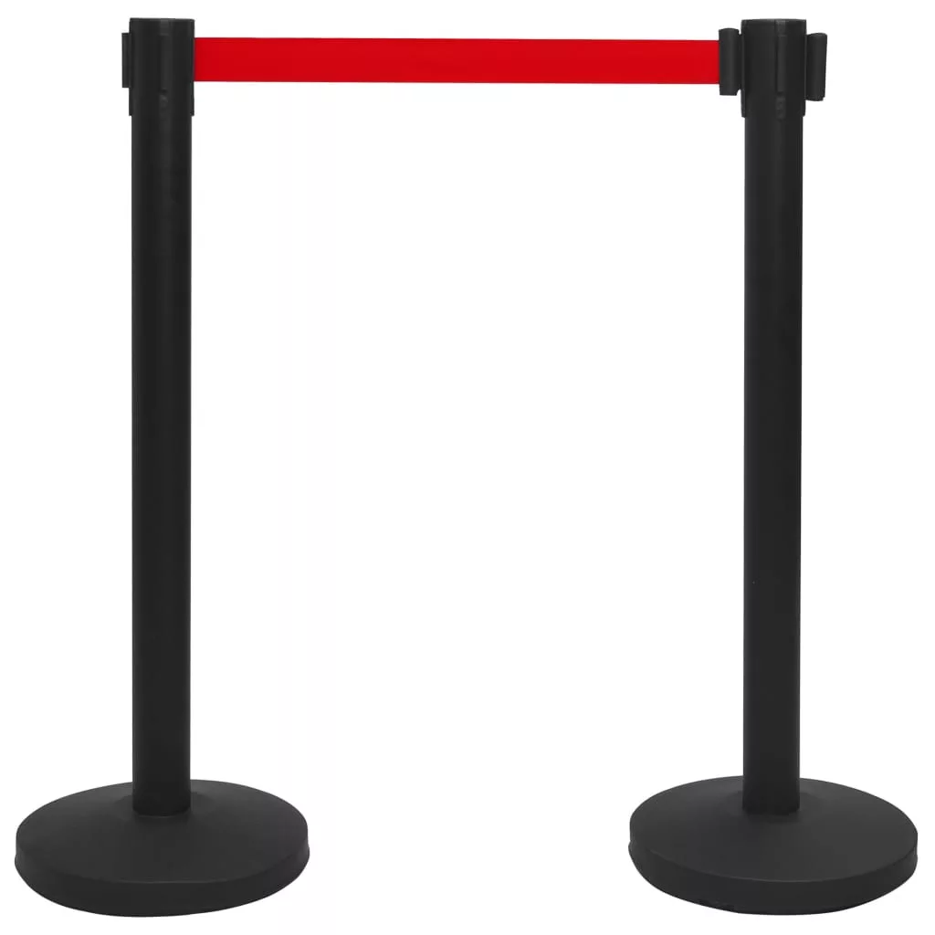 fekete acél repülőtéri elválasztó tartóoszlop szíjjal