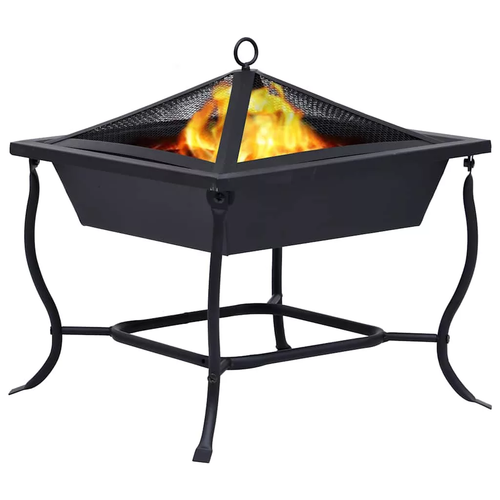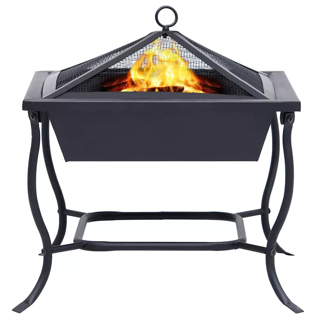 fekete acél tűzrakó tál 42x42x45 cm