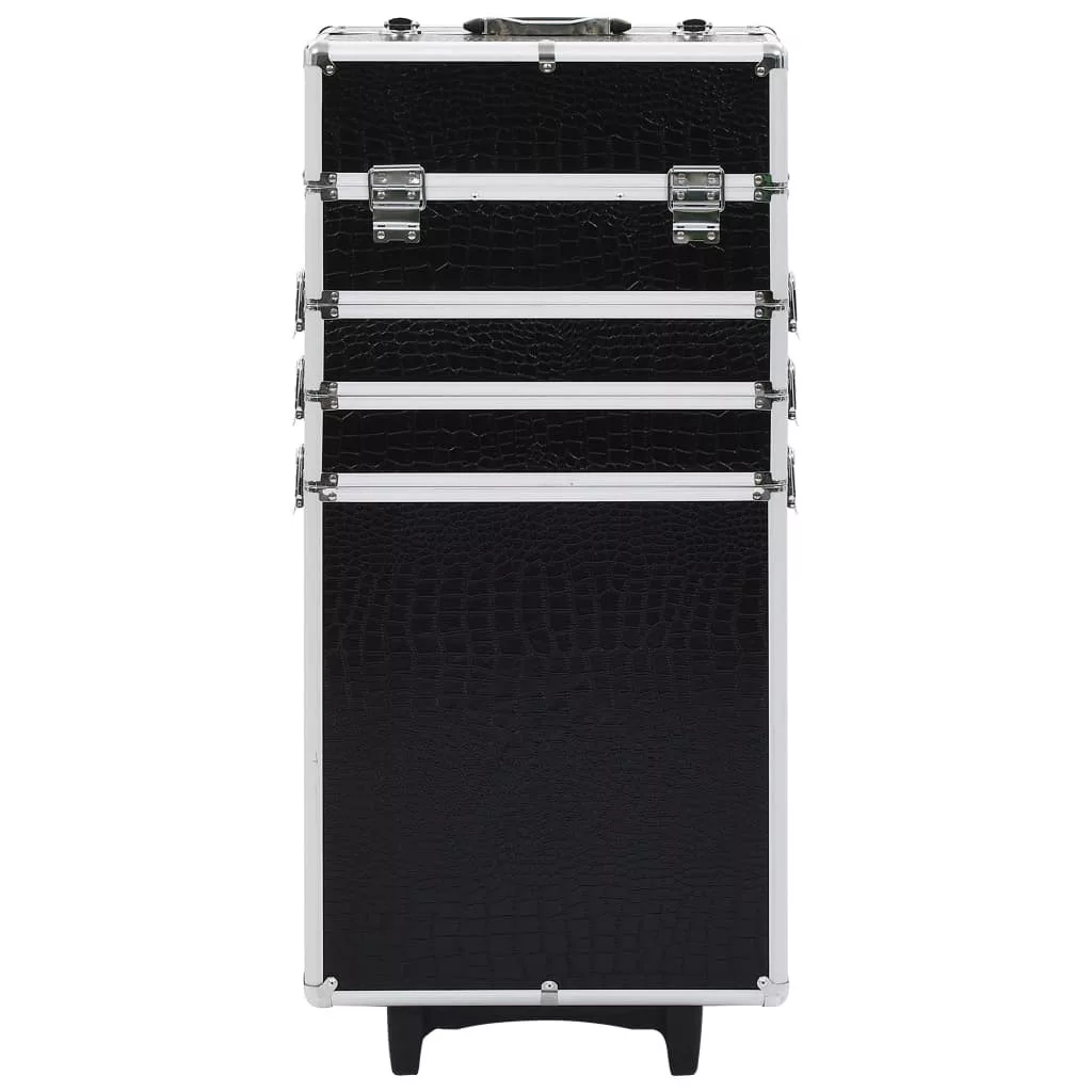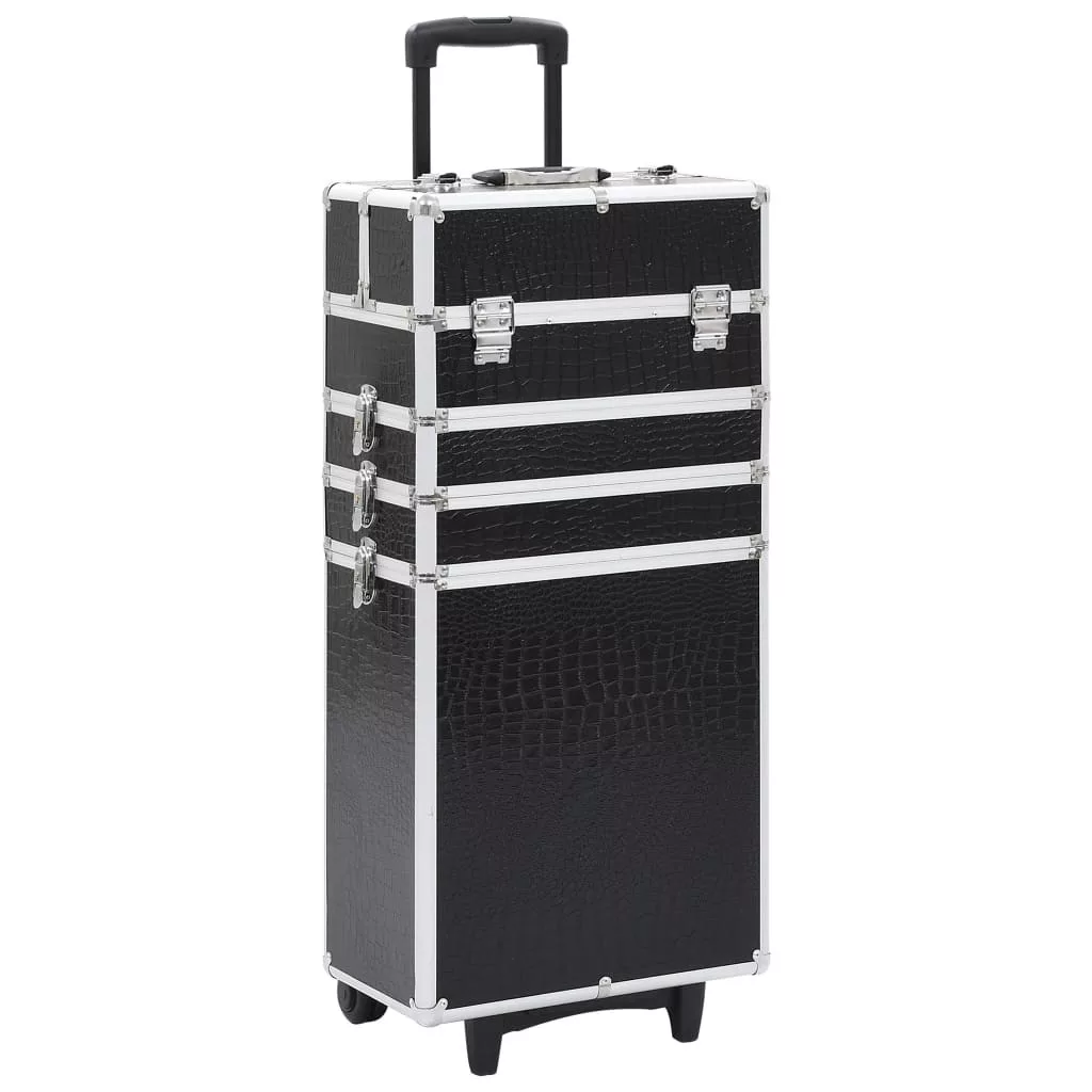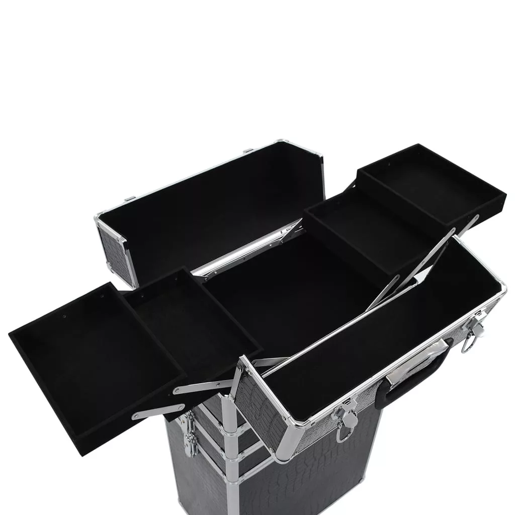 Sminkbőröndünk ideális megoldást biztosít kozmetikai szerei rendezetten tartására. Egyszerűen csak pakoljon be minden szükséges dolgot ebbe a kozmetikai táskába és vigye magával! Ez a fából, alumíniumból és ABS bevonattal készült sminkbőrönd egyszerű megoldást biztosít kozmetikai szerei tárolására és tökéletes állapotban való megőrzésére. Ez a sminkbőrönd 4 polccal és a felső részben kihúzható tálcákkal lett felszerelve, melyek bőséges helyet biztosítanak kozmetikai és szépségápolási szerei számára. 4 levehető görgőkerékkel rendelkezik, melyek segítségével könnyen mozgatható és bárhová magával vihető.