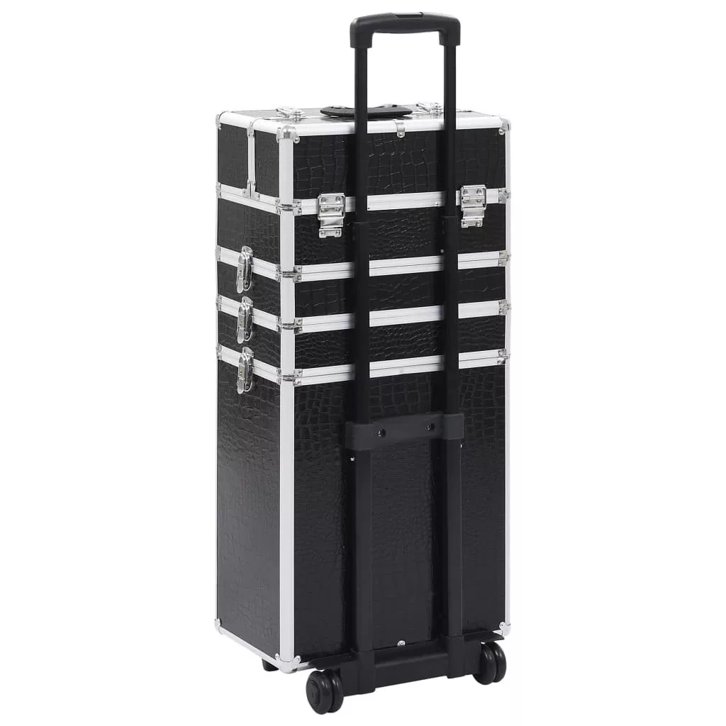 fekete alumínium sminkbőrönd krokodilbőr mintával
