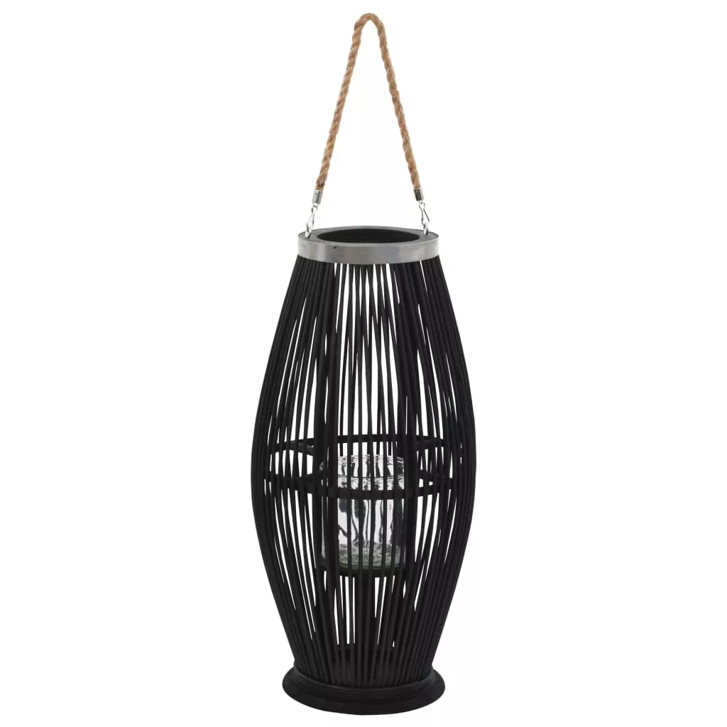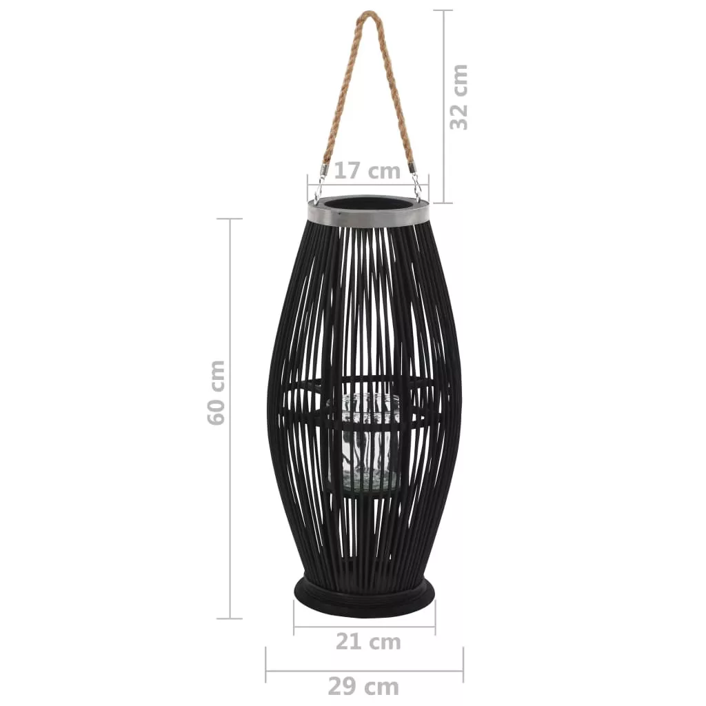 fekete bambusz függő gyertyatartó lámpás, 60 cm