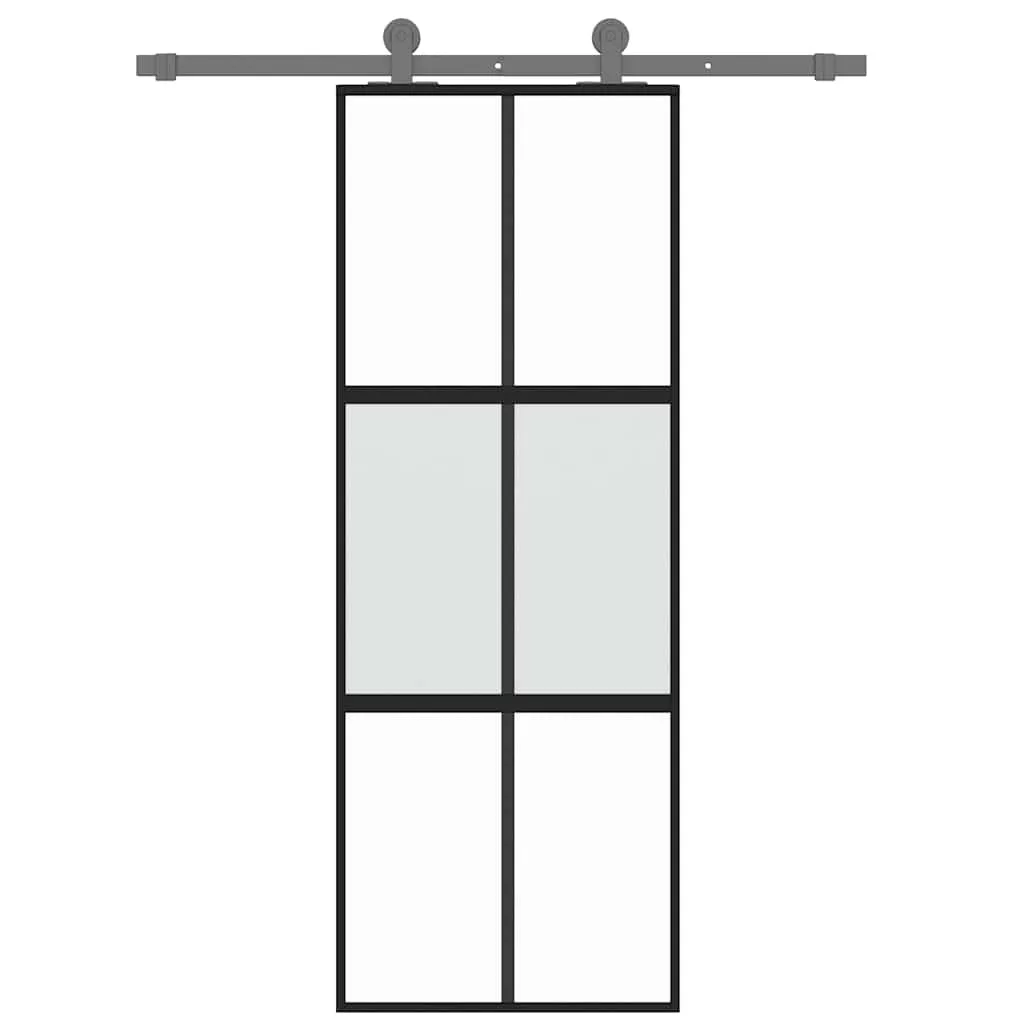fekete edzett üveg és alumínium tolóajtó 76 x 205 cm