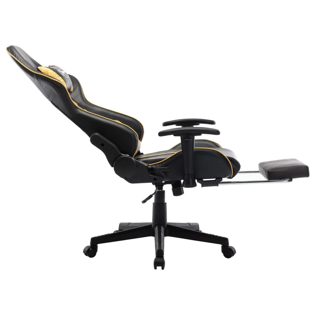 fekete és aranyszínű műbőr gamer szék lábtámasszal