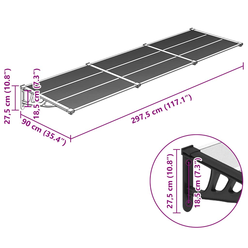 fekete és átlátszó polikarbonát ajtóelőtető 297,5 x 90 cm