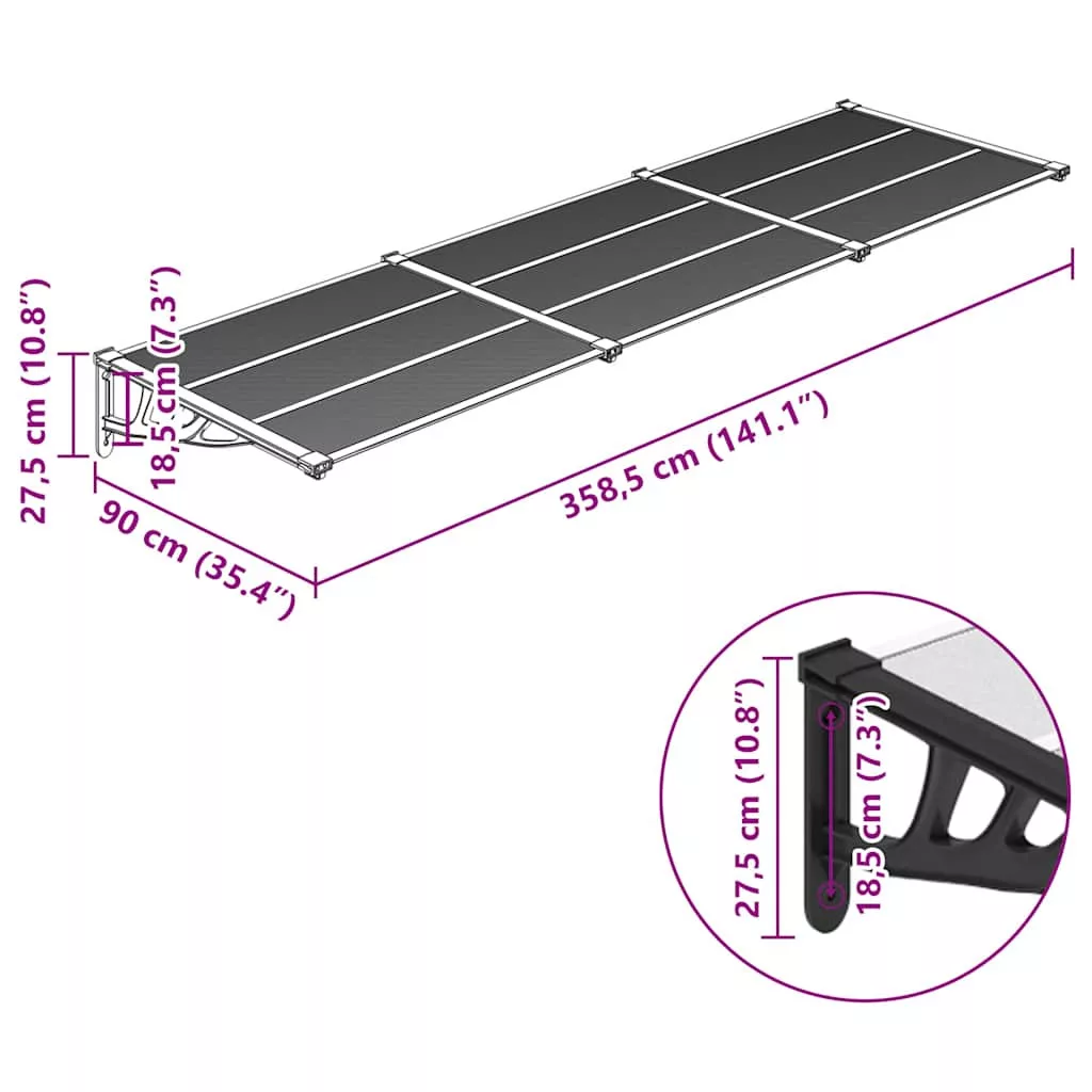 fekete és átlátszó polikarbonát ajtóelőtető 358,5 x 90 cm